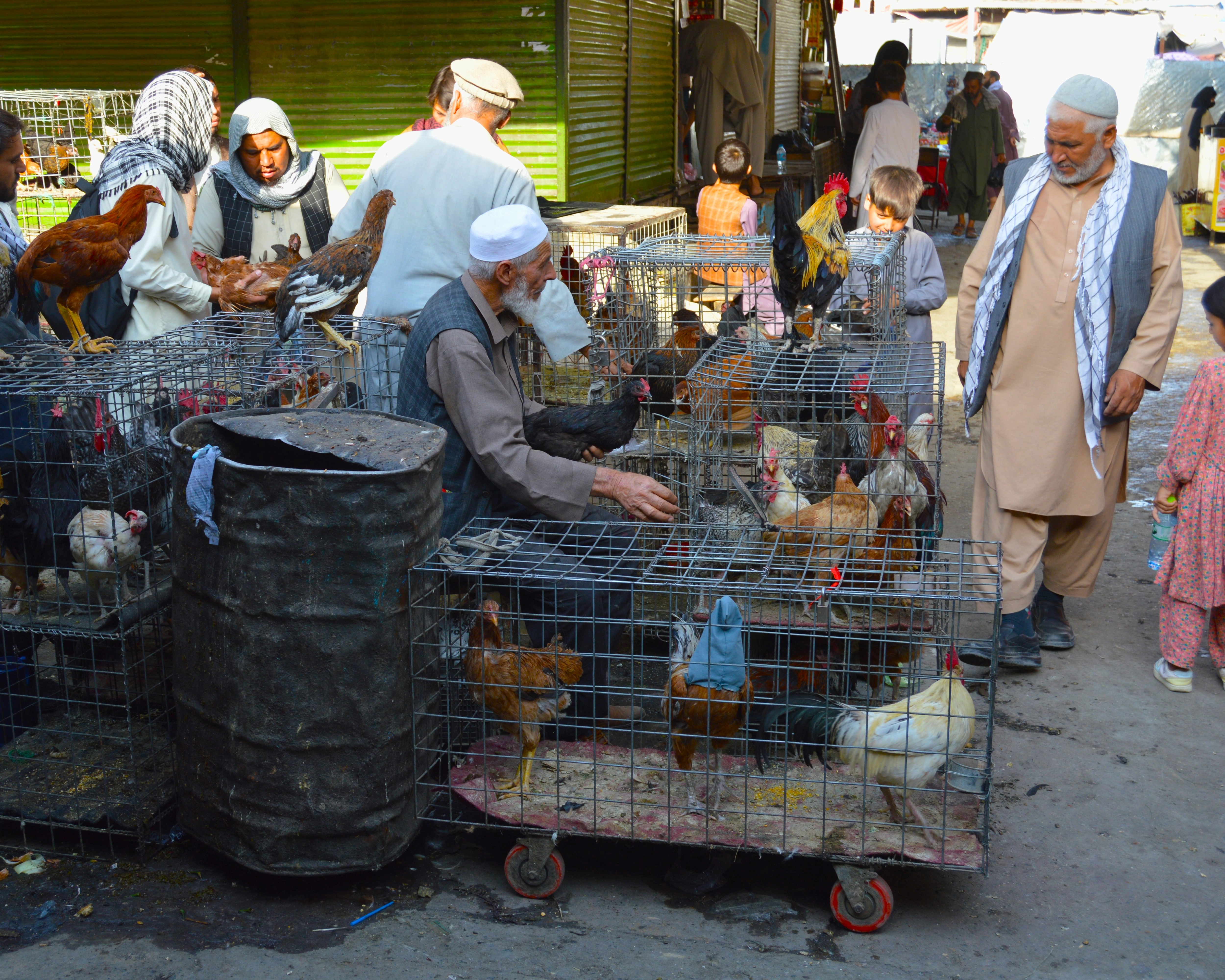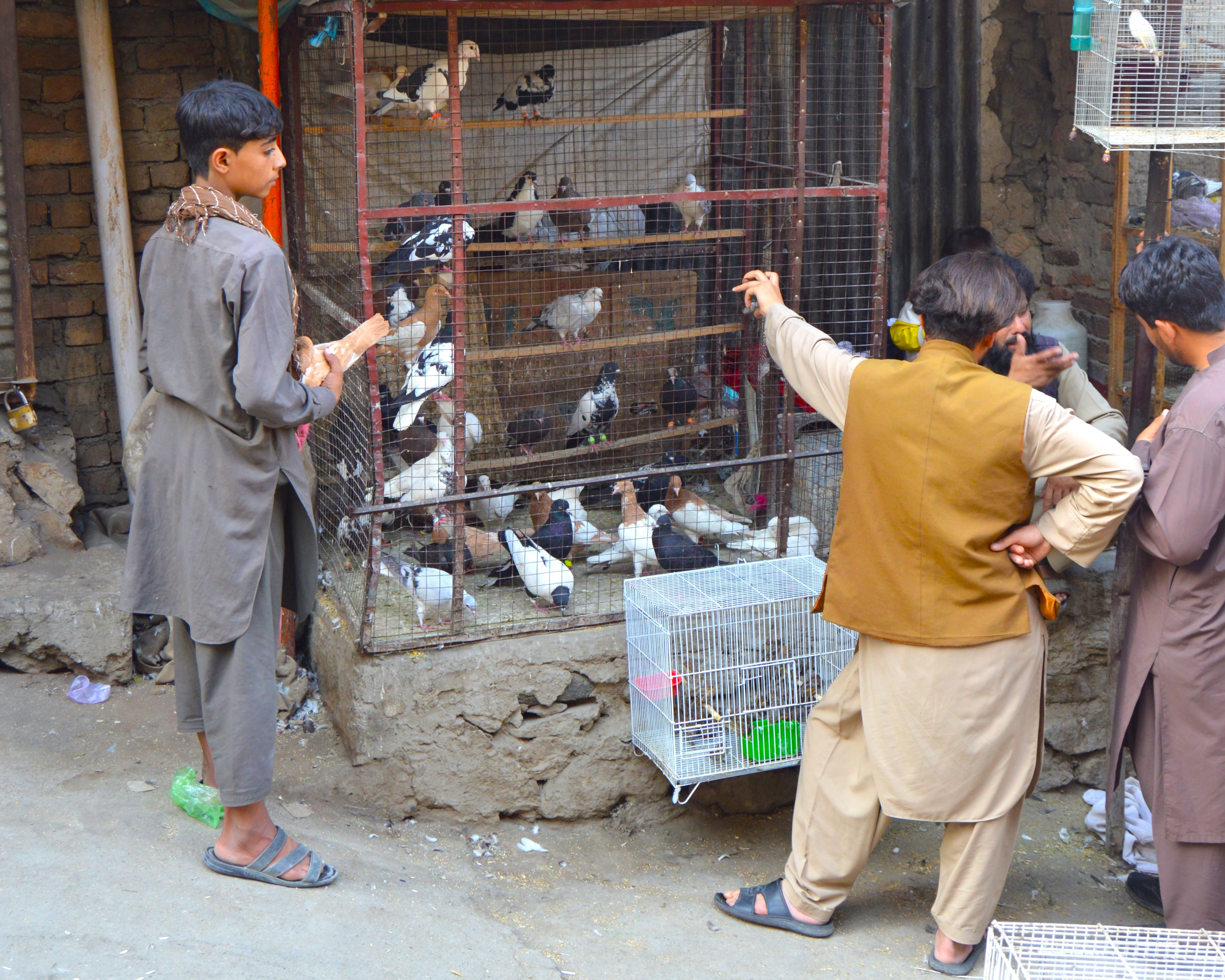 Después llegué al mercado de las aves. No era un mercado: era un milagro ruidoso. Un corredor vivo, saturado de alas batiendo, jaulas temblorosas, gritos que parecían parte del aire. Palomas mensajeras alineadas como escuadrones; tórtolas inquietas; faisanes brillando como si hubieran sido tallados a mano; pavos exagerando su tamaño; gallinas y pollos amontonados en un caos organizado; patos desorientados; periquitos y cotorras en colores imposibles; loros imitando voces; jilgueros y estorninos con sus pequeños temblores de sonido. Incluso algunos halcones juveniles, envueltos en una dignidad salvaje. El mercado respiraba y vibraba con una intensidad que no existía en ningún otro lugar de Afganistán.