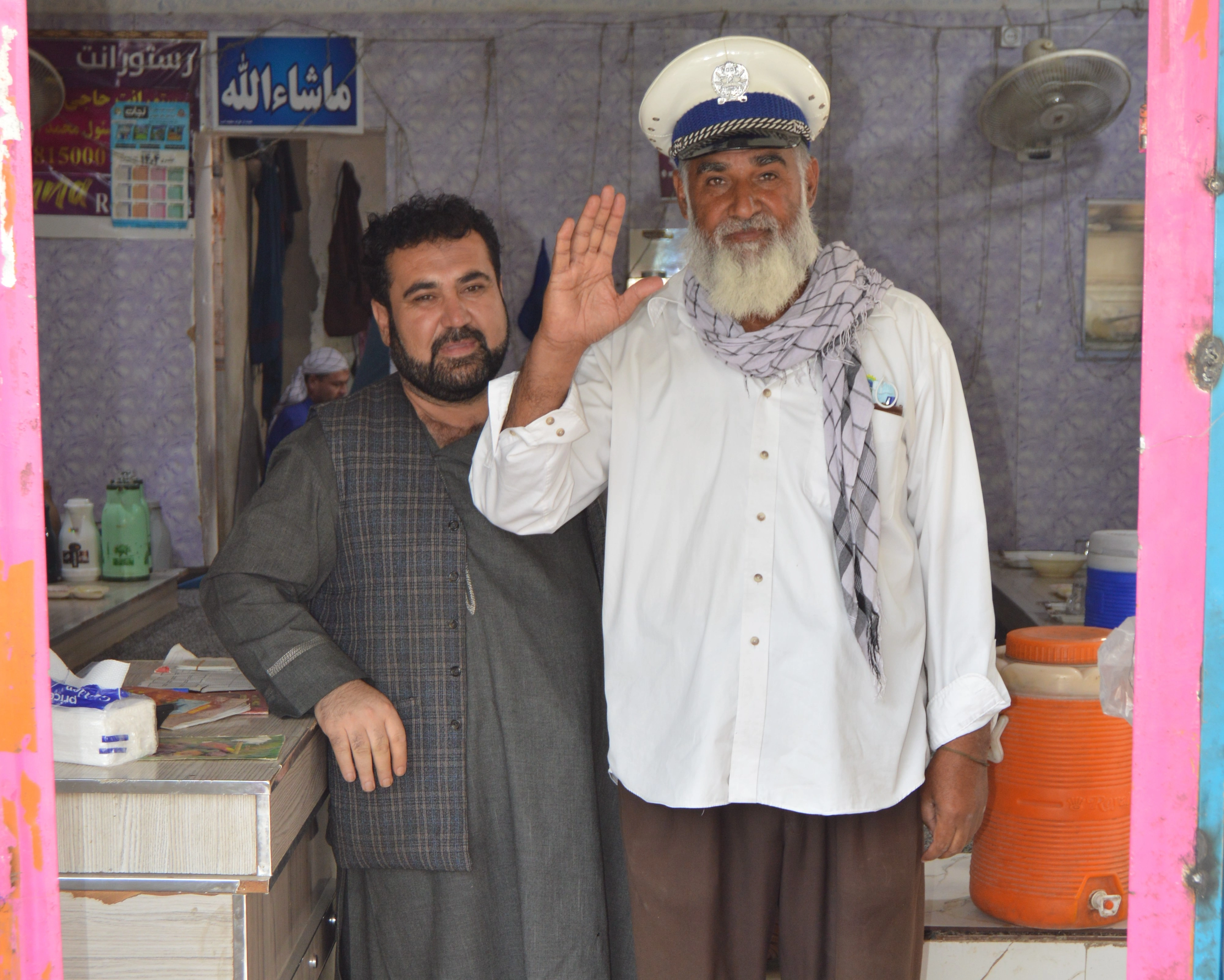 Era Abdul Salam. Gordo, amable, con una mirada transparente. Nos invitó a pasar, nos sirvió té sin preguntar y empezó a hacernos preguntas con un inglés limitado pero suficiente. Desde la calle, unas veinte personas miraban la escena con paciencia y curiosidad. Abdul vivía en un pueblo cercano, trabajaba todo el día, hablaba de sus hijos con orgullo y nos insistió varias veces para que fuéramos a su casa. El tiempo no nos daba, pero la hospitalidad era tan genuina que costaba decirle que no.
