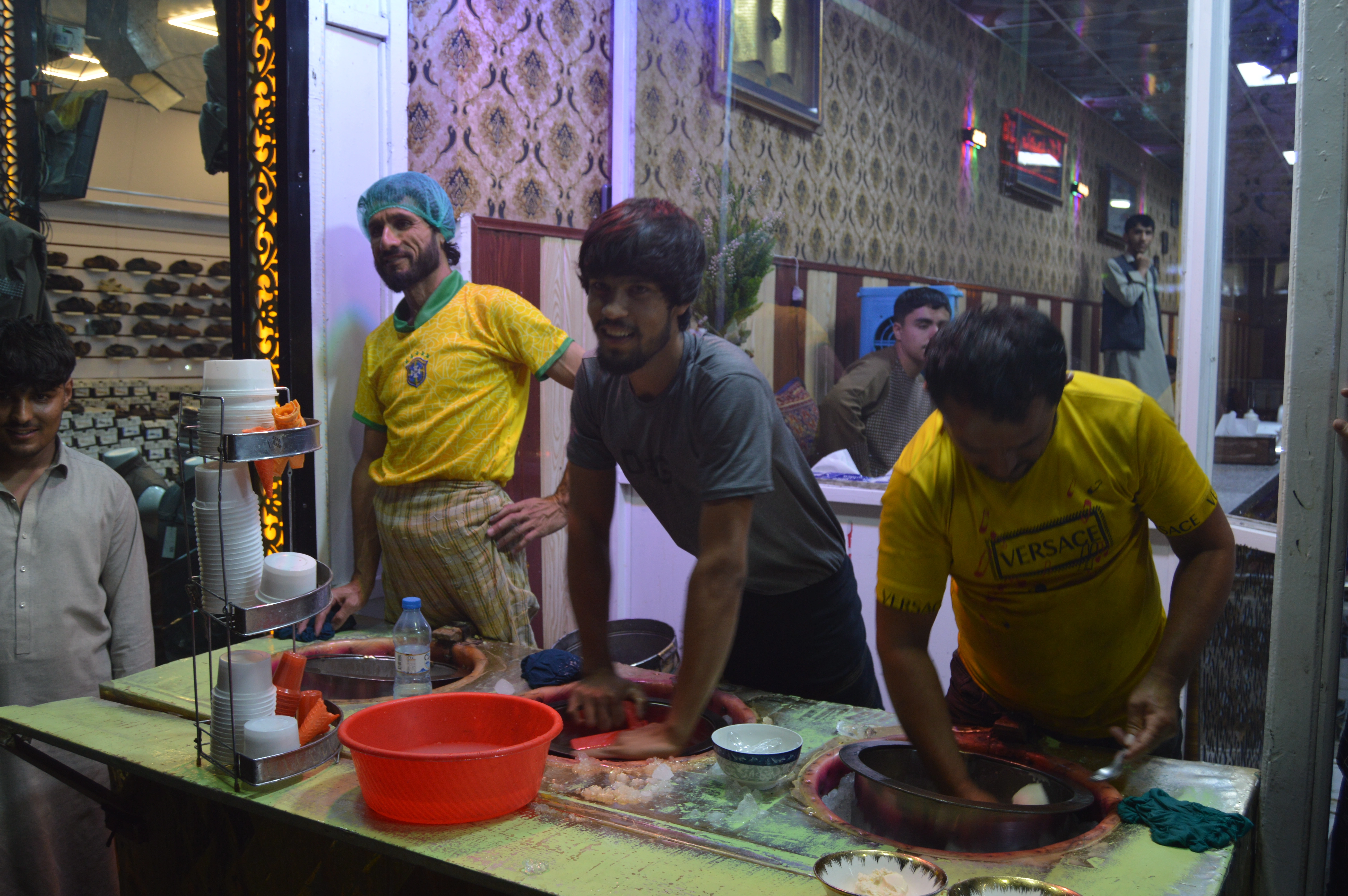 El último día era para encontrarnos con Jawad, nuestro amigo afgano que habíamos conocido en Dusambé. Puntual, sonriente, preparado como si nos hubiera estado esperando desde hace meses. Nos llevó a almorzar y pedimos pulao. Yo pedí un batido de mango. Fue, sin exagerar, el mejor mango de mi vida. Los mangos pakistaníes tienen un perfume inexplicable: dulces, densos, perfectos. Era imposible no cerrar los ojos al probarlo.