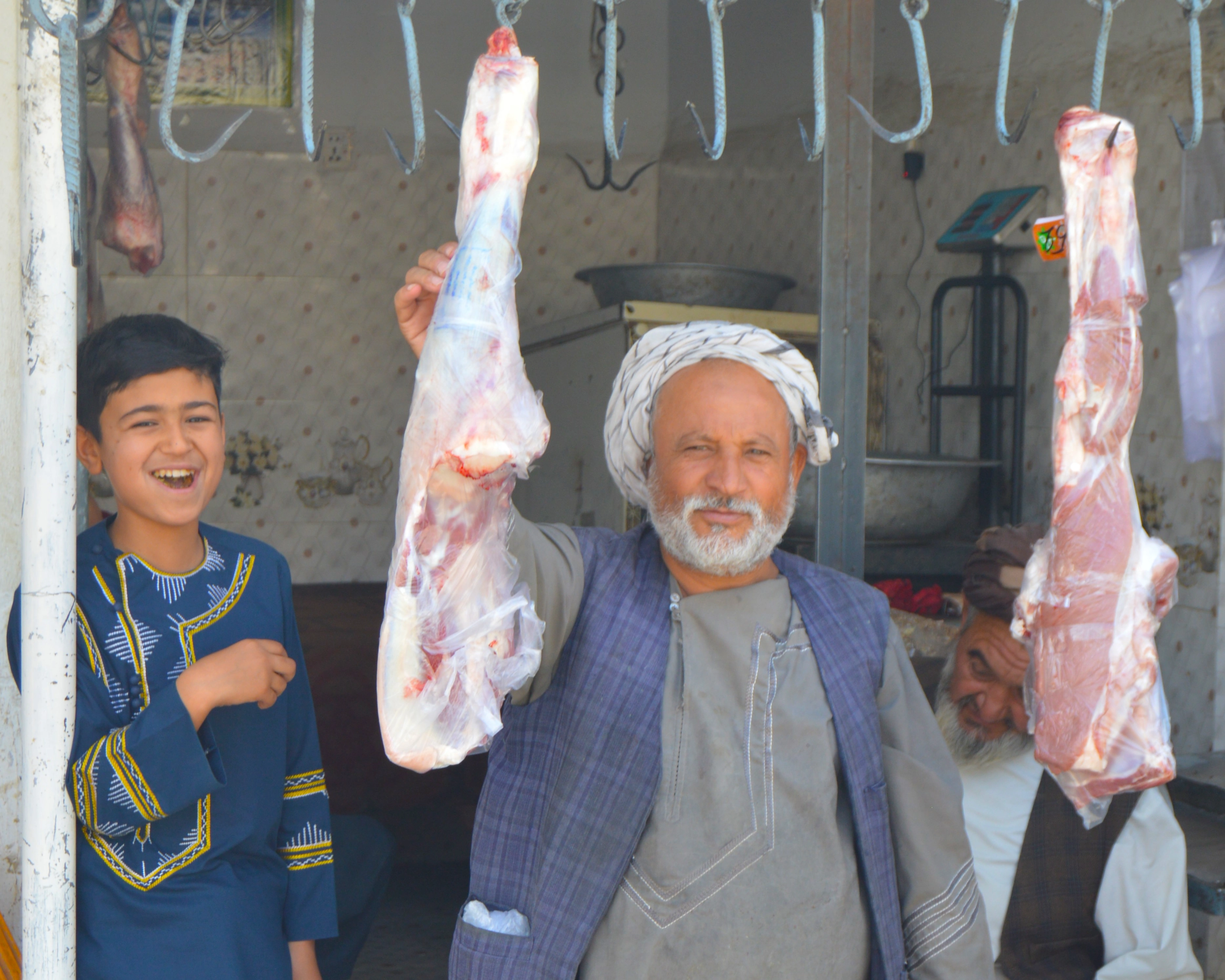 Mazar-e Sharif era distinta: más moderna, más ordenada, más abierta que Kabul o Bamyan. Las calles estaban llenas de mercados, pilas de telas gritando colores, carnicerías donde la carne colgaba al aire libre, puestos que se repetían como ecos. Un caos vivo y funcional.