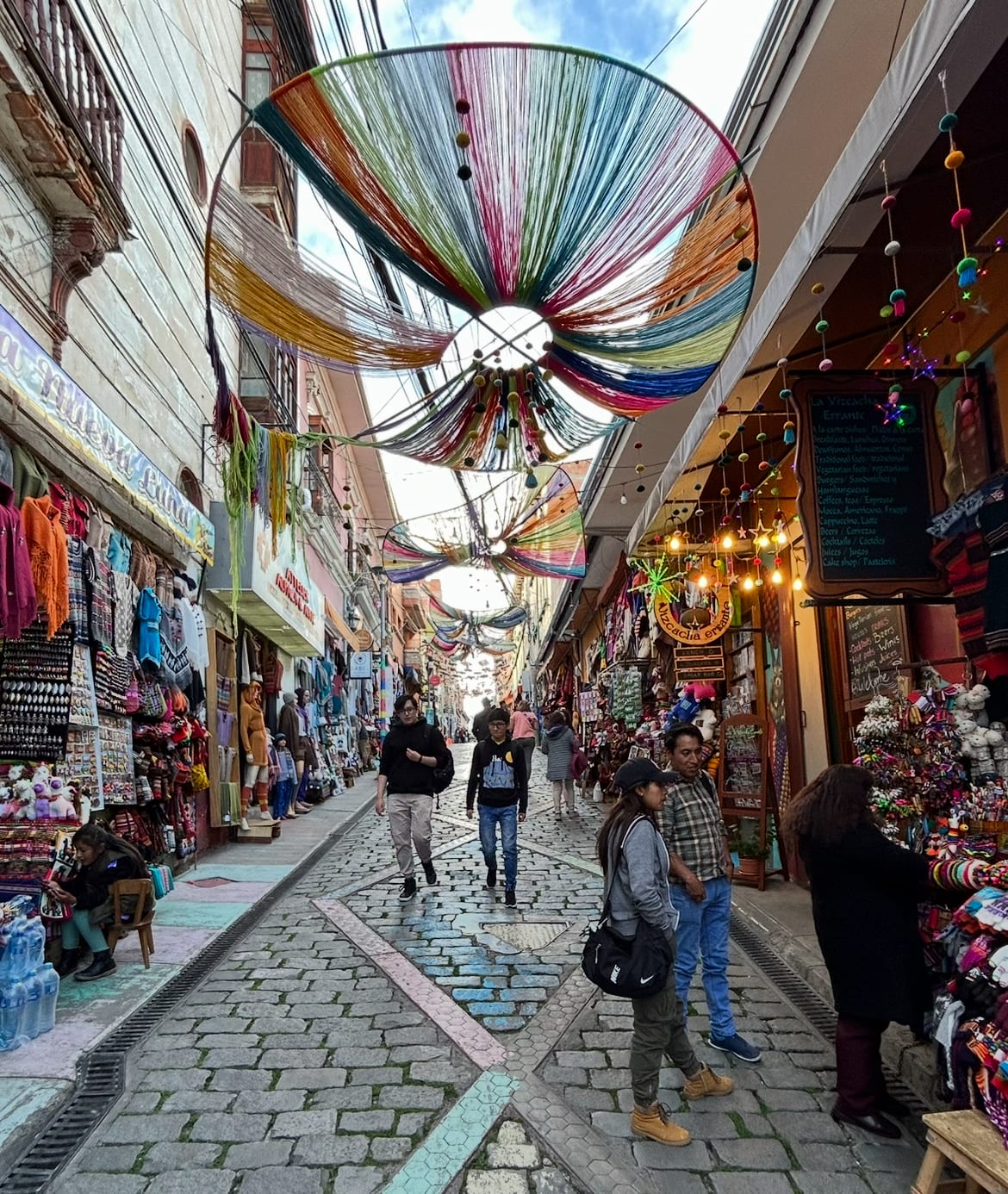 El primer choque fue sensorial. El mercado de las Brujas desplegaba sus puestos con montones de hierbas, botellitas de colores, amuletos, fetos de llama secos colgando como talismanes de otro tiempo. Caminé despacio, observando las miradas firmes de las vendedoras, mujeres de polleras amplias y sombreros que parecían sostenerse en equilibrio imposible. Acepté una charla breve con una de ellas, que me explicó para qué servía cada mezcla: un preparado para el amor, otro para alejar las envidias, uno más para atraer la fortuna. El olor era áspero, entre incienso y tierra, y me quedó la sensación de haber atravesado una frontera invisible, donde la fe no se reza, sino que se compra en paquetitos de papel.