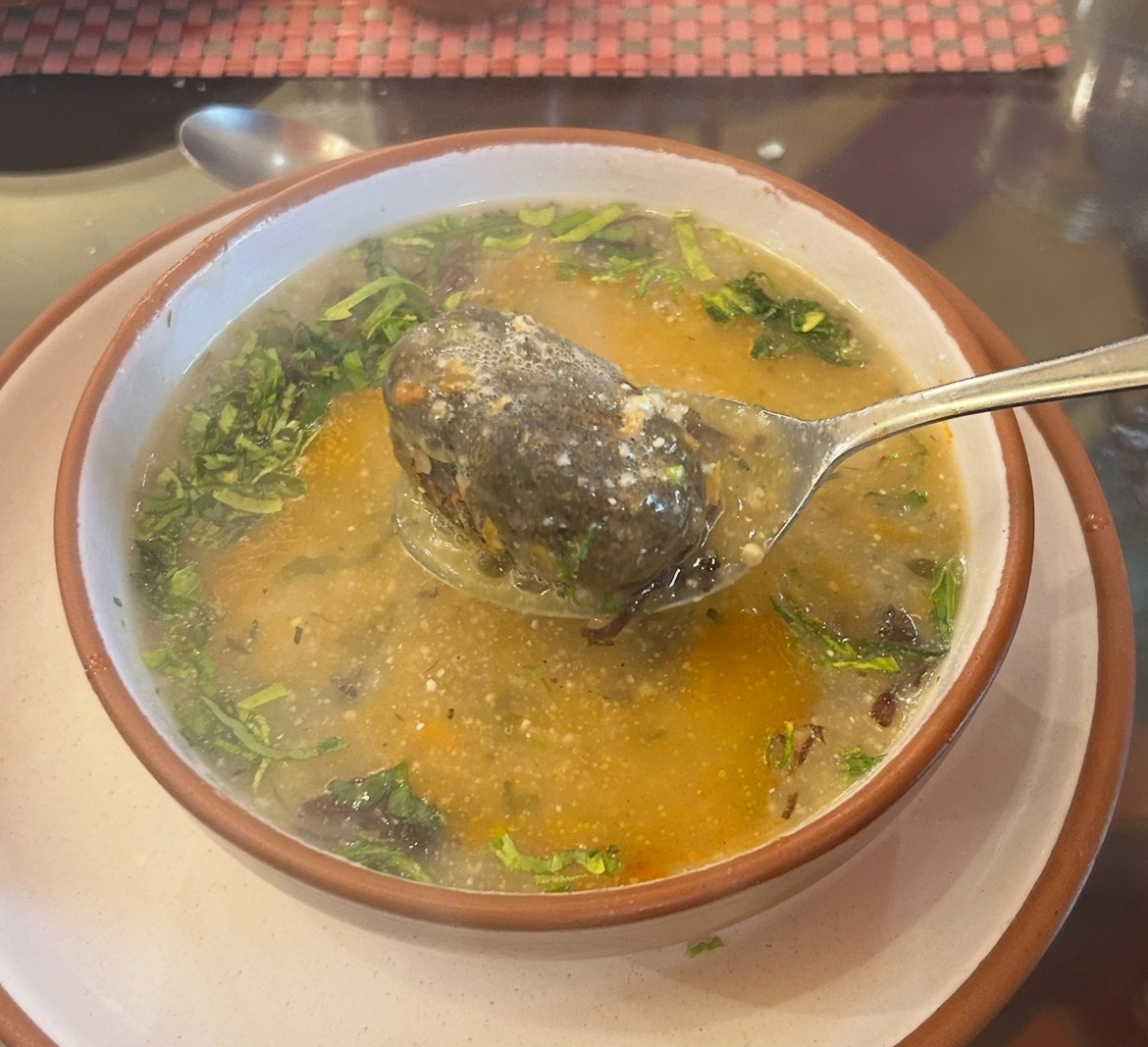 • Sopa de maní: Sopa con base de maní, carne, papa y fideo. Típica de Cochabamba, sorprendentemente rica. 10-15 BOB.
