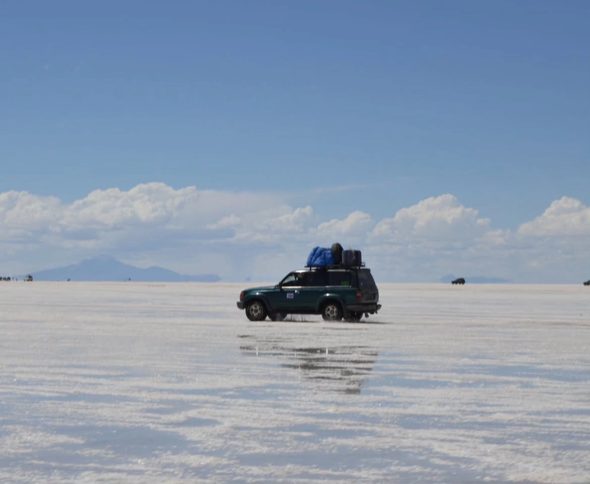 Ahí apareció la anécdota inesperada: viajé gratis porque el chofer, que apenas manejaba un castellano básico, necesitaba un traductor. Dos alemanes habían contratado la excursión y, aunque hablaban inglés, con él no podían comunicarse. Terminé ocupando un rol improvisado: puente entre ambos lados. Traducía preguntas sobre rutas, tiempos y hasta sobre las bromas que el chofer lanzaba con una seriedad engañosa. Esa mediación me dio un lugar distinto: no era solo un pasajero, estaba adentro de la dinámica del viaje. Entre risas, confusiones y aclaraciones, el salar se convirtió no solo en paisaje, sino en escenario compartido, donde yo no observaba desde afuera, sino que formaba parte del movimiento mismo.