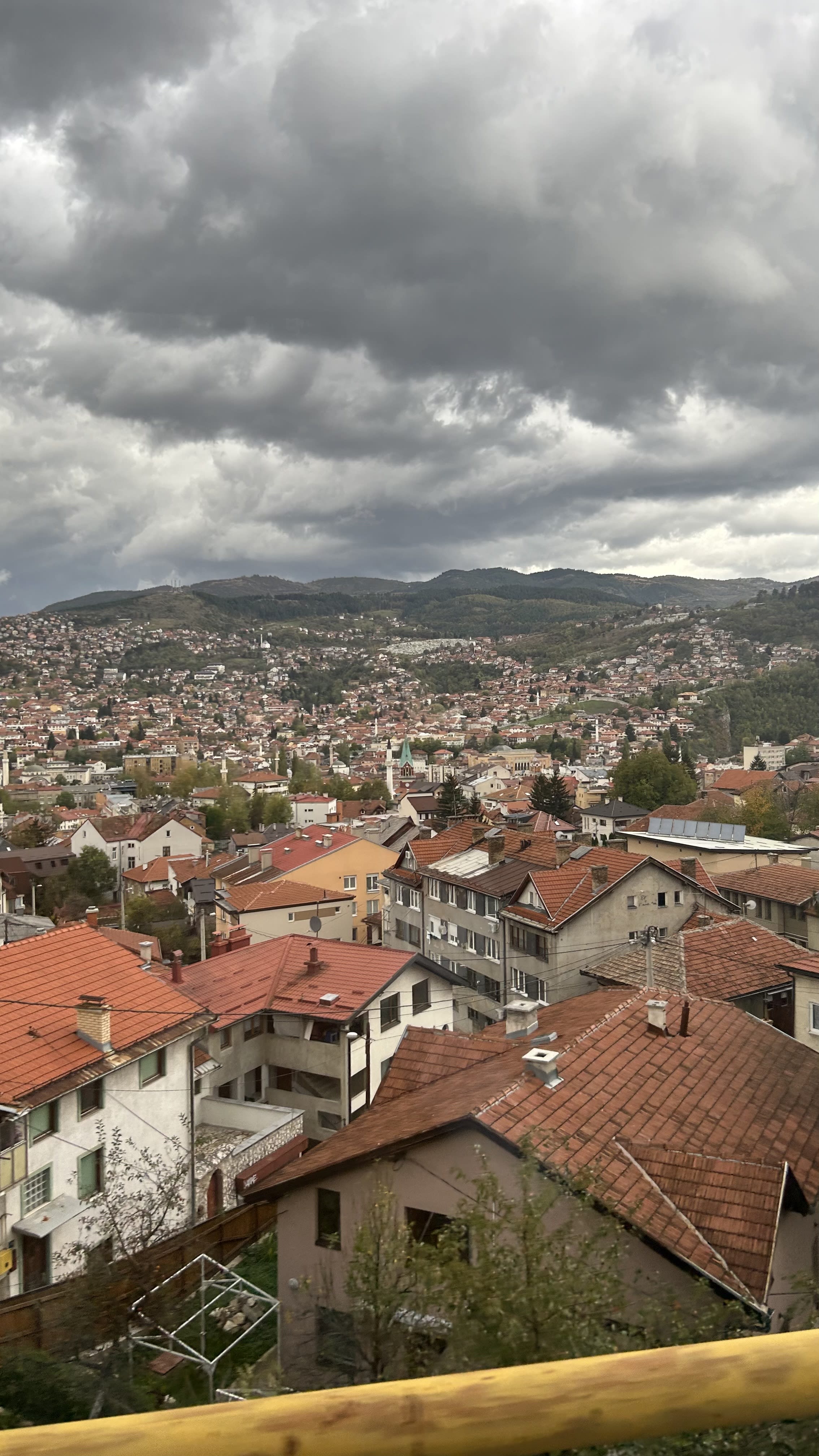 Llegar a Sarajevo desde Belgrado fue un viaje que se sintió como una transición entre épocas. La ruta, larga y monótona, parecía negarse a ceder, dejando atrás un paisaje de pueblos silenciosos que aún gritan el eco de una guerra. Fue solo al final, mientras el bus serpenteaba por las colinas, que la vista se abrió a un espectáculo inesperado. Desde lo alto, Sarajevo se desplegó como un mosaico de tejados rojizos y puentes que se aferran a un río, rodeada por montañas que la abrazan con un aire protector.