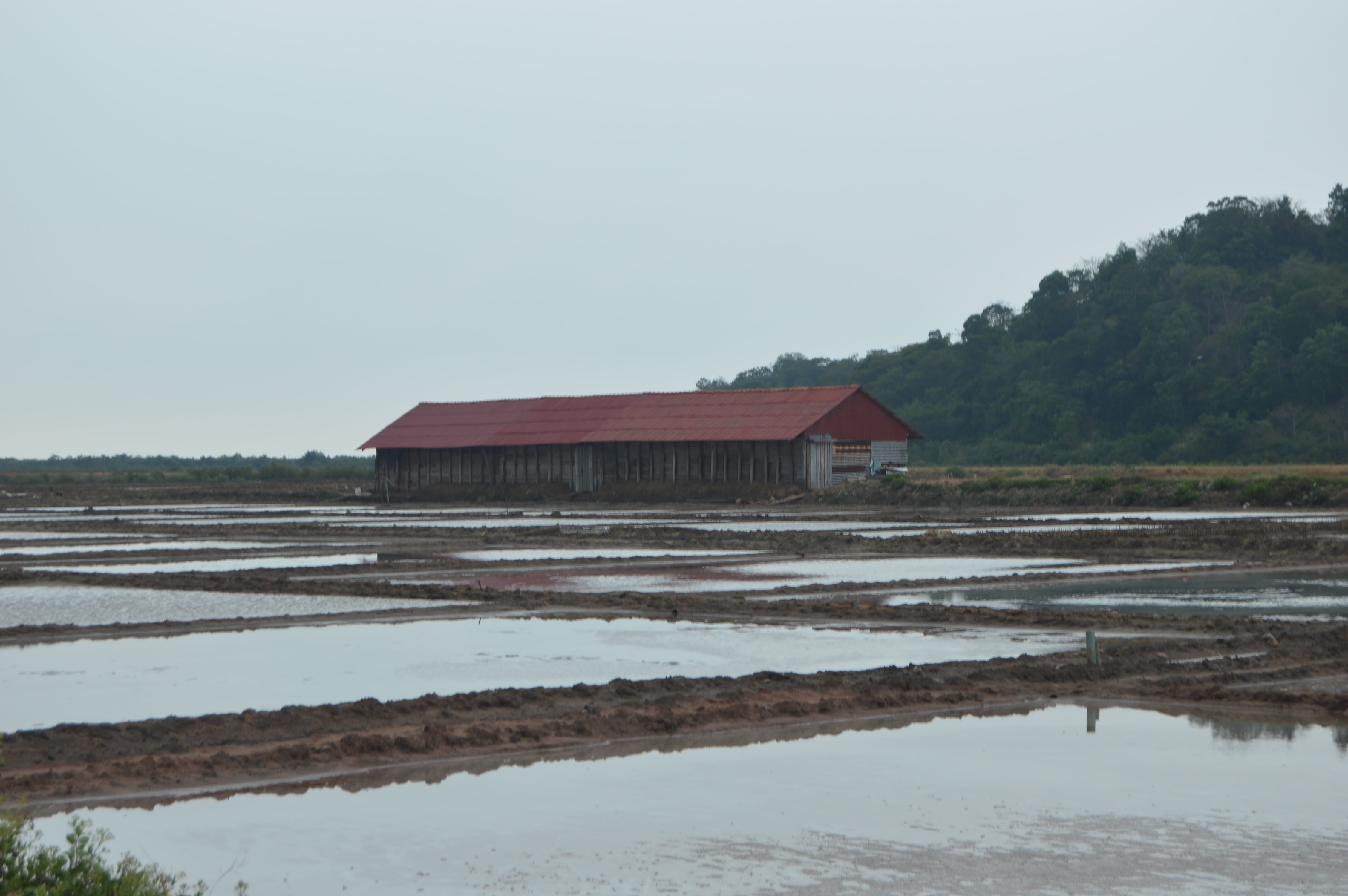 Al día siguiente alquilé una moto y salí a recorrer. En los campos de sal esperaba encontrar a los trabajadores descalzos bajo el sol, pero el agua cubría los salitrales: no había movimiento humano, solo un espejo blanco extendiéndose en silencio. Caminé entre casitas de madera corroída, techos vencidos y pobreza que se volvía paisaje. De allí seguí hasta el mercado de cangrejos de Kep, una localidad vecina. Allí la quietud se quebraba: el aroma de ajo, limón y brasa se mezclaba con el bullicio de mujeres cocinando cangrejo azul al instante. El caos encantador del sudeste asiático, con su orden secreto.