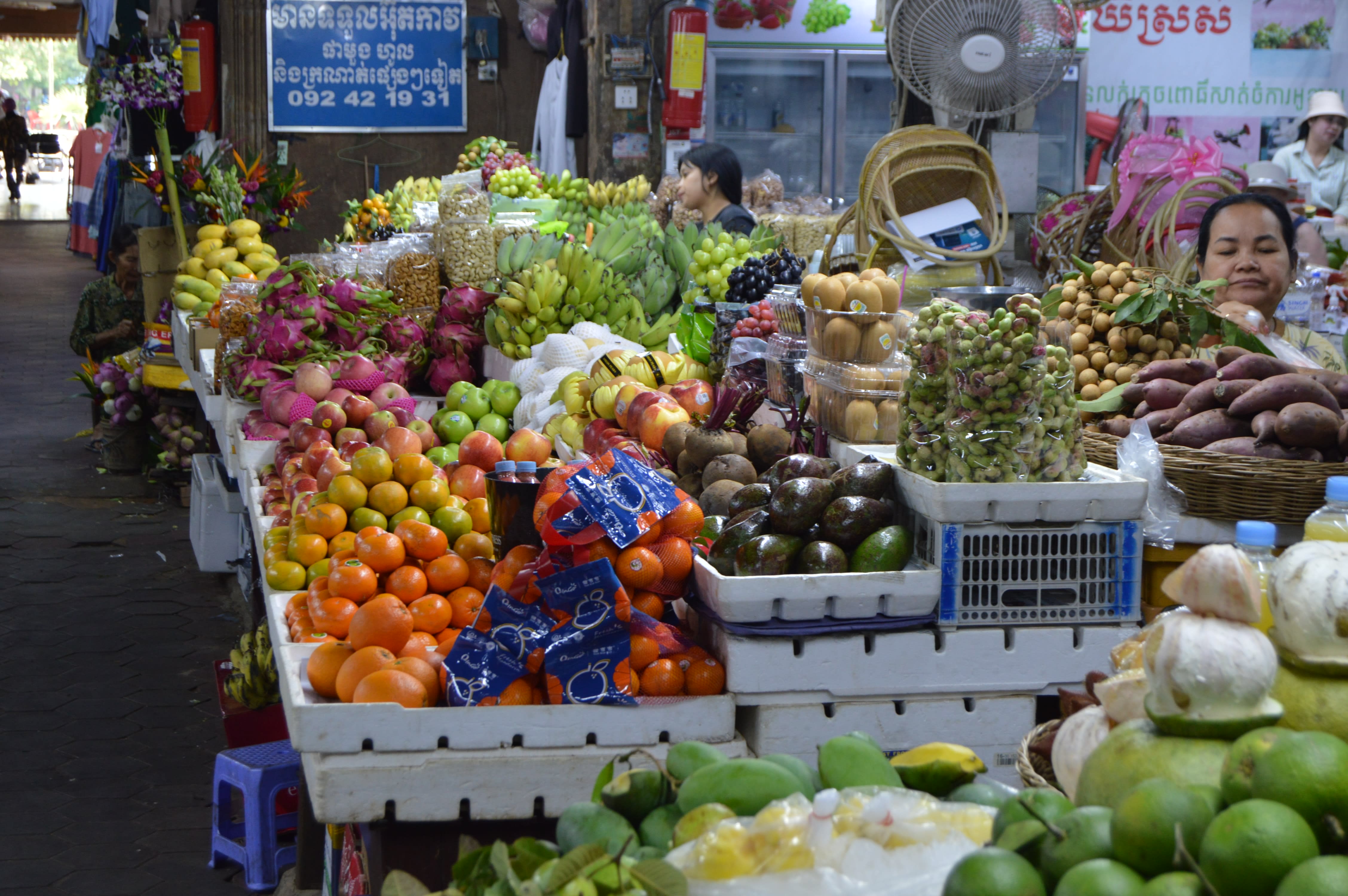 Otro día crucé al Phsar Leu Thom Thmey, un mercado detenido en los setenta. No había recuerdos turísticos: solo lo real. Carne sobre mesas de madera, peces agonizando en cubetas turbias, verduras amontonadas que perfumaban el aire de verde y tierra. Allí las mujeres dominaban la escena, espantando moscas con varas de plástico como si dirigieran un ritual. Entre ellas, bolsas de malla guardaban serpientes vivas, esperando su destino.