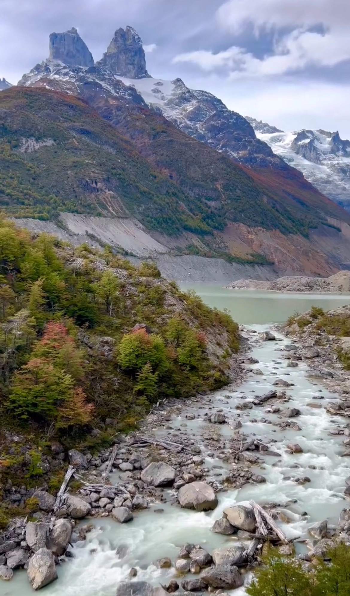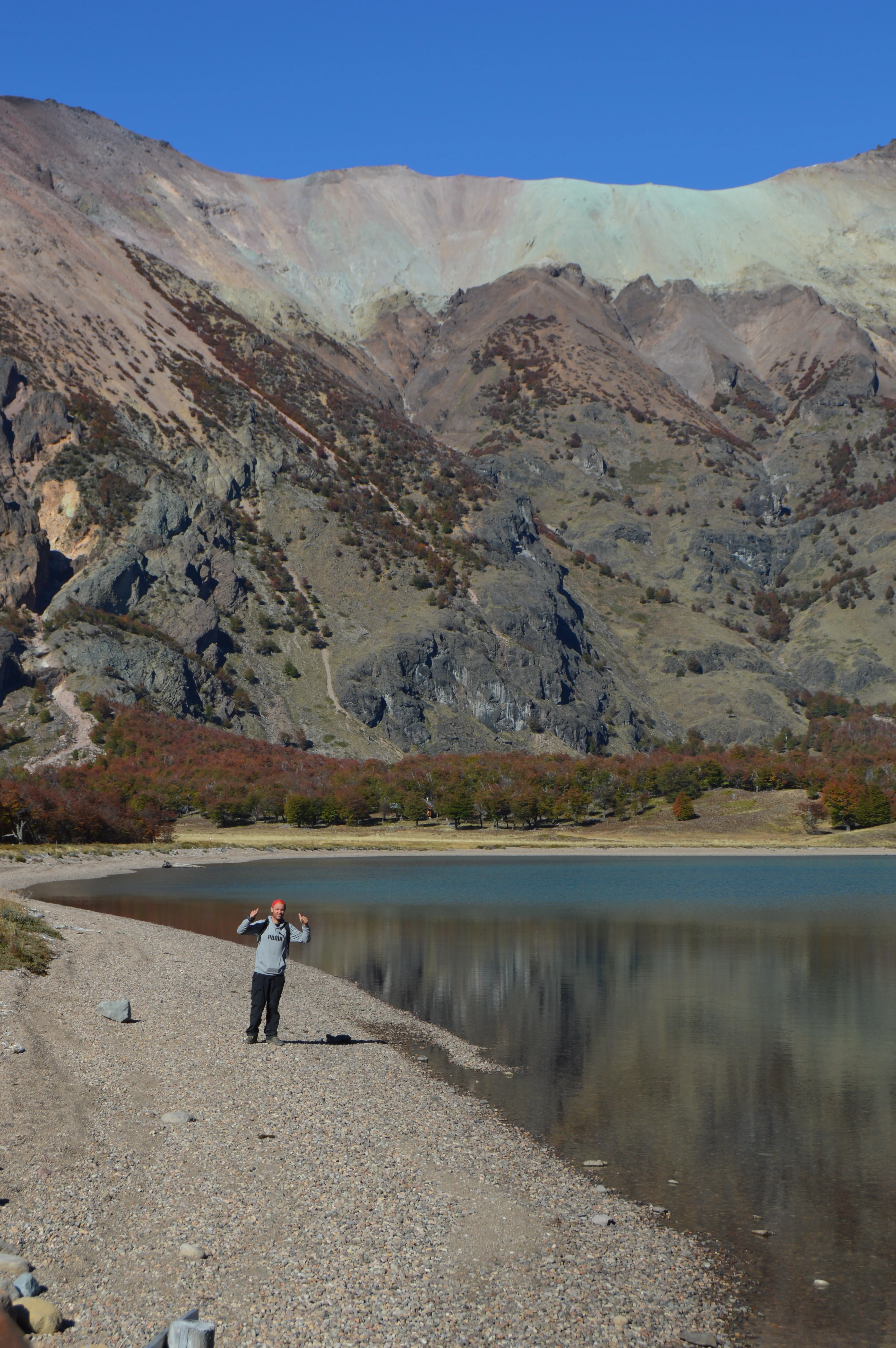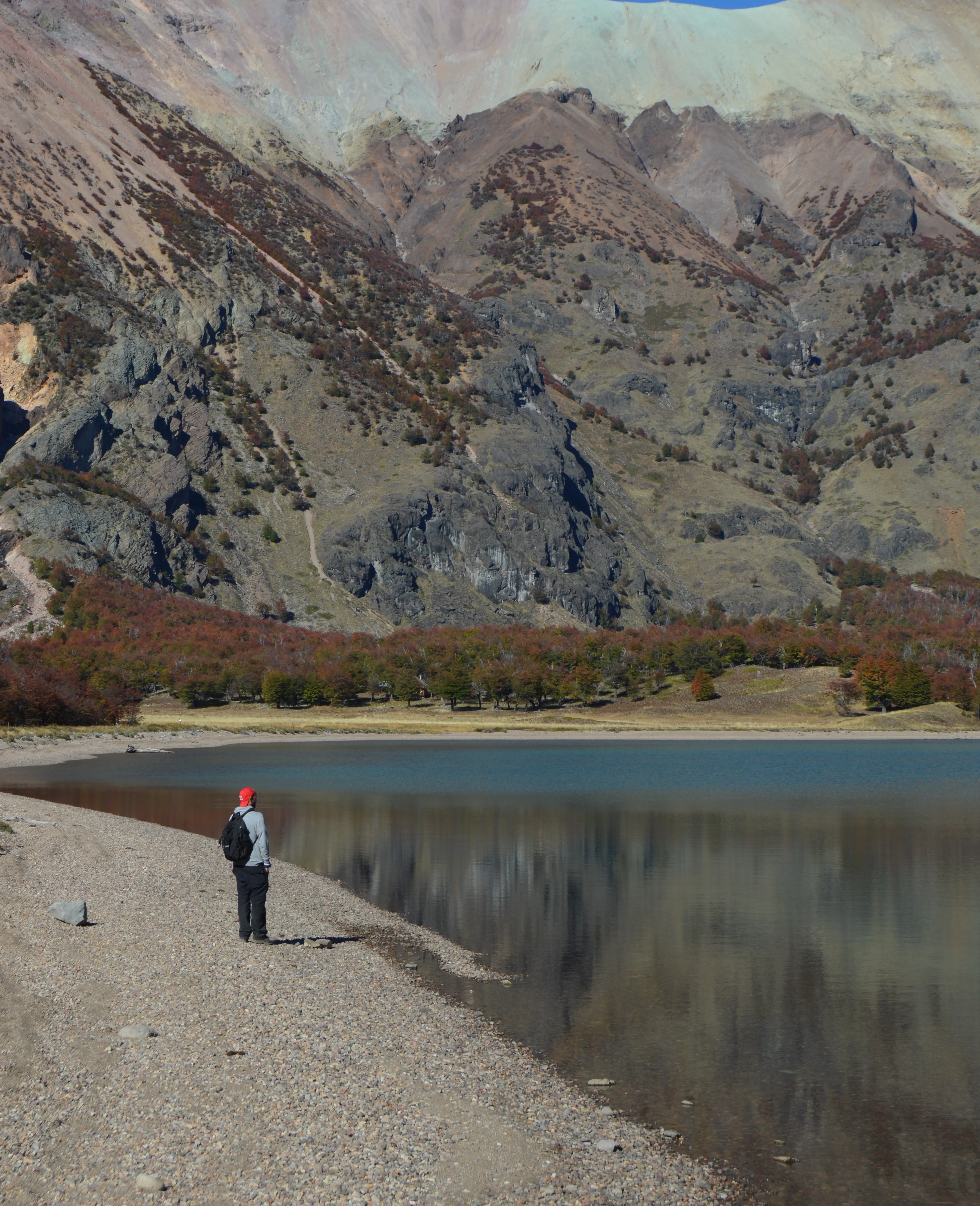 El glaciar apareció de forma dramática. Un muro de hielo blanco y azul sucio, descendiendo por un valle rodeado de lengas otoñales. A sus pies, la Laguna Calluqueo, un cuerpo de agua de un tono gris metálico que reflejaba la inmensidad del cielo. El aire era gélido, pero tenía una pureza cristalina. Estaba completamente solo. No había un alma, ni un rastro de vida humana, solo yo, la laguna, el glaciar y el resto de la naturaleza para mí.