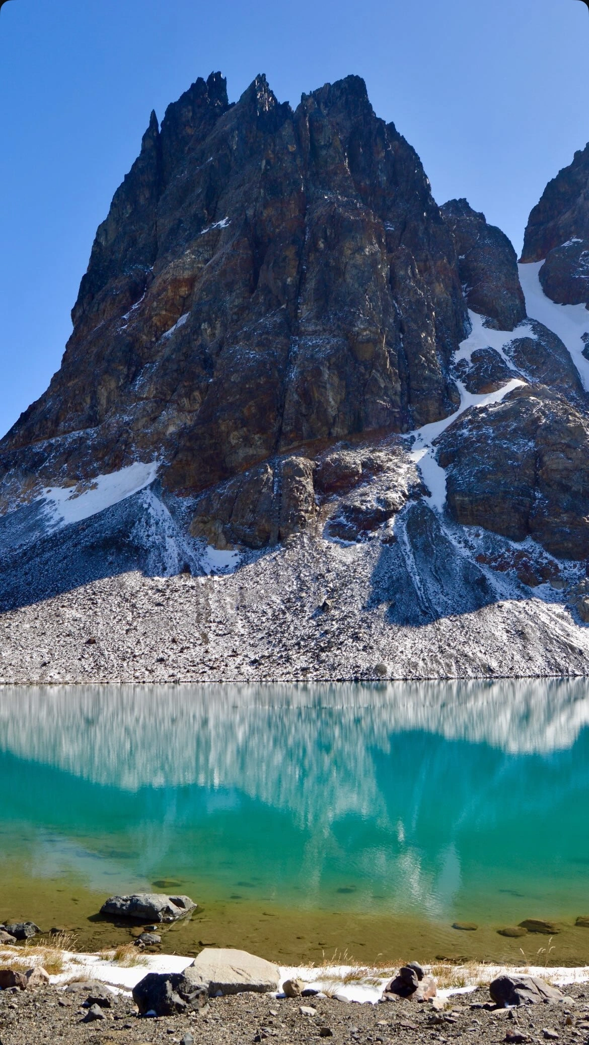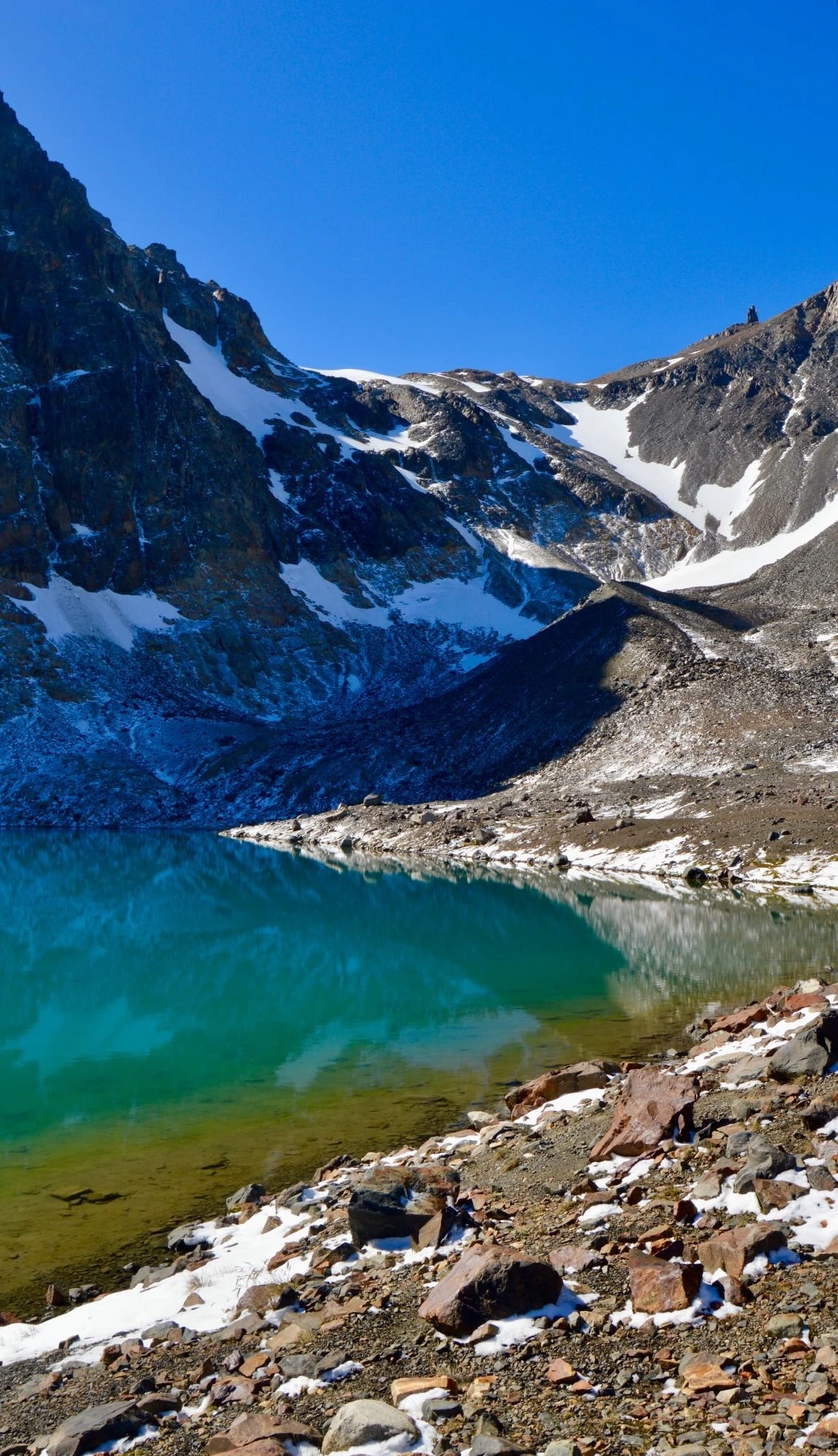 El punto medio del trayecto fue una laguna sin nombre, cuyas aguas quietas reflejaban el cerro Tamango con una precisión casi obscena. Ahí, entre bocados de barra energética y sorbos de agua ya tibia, el paisaje me recordó su escala real: era una mota de polvo en un pliegue de la cordillera.