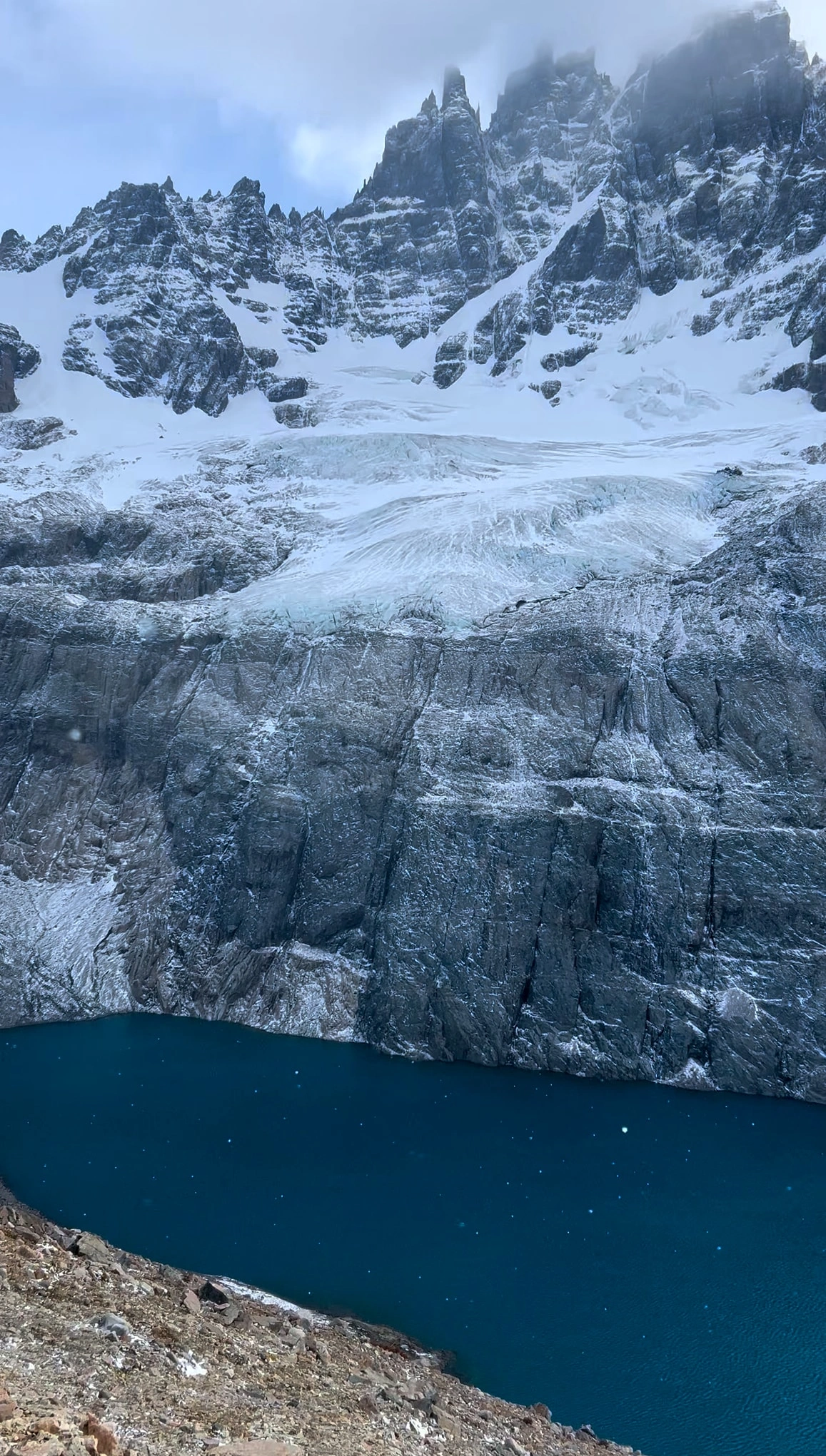 El lago era de una belleza casi irreal. Pasé horas viendo cómo la luz cambiaba sus colores del azul cobalto al verde esmeralda. No había nadie más para compartir ese momento. Solo el sonido del viento y el crujido ocasional del hielo en los glaciares distantes.