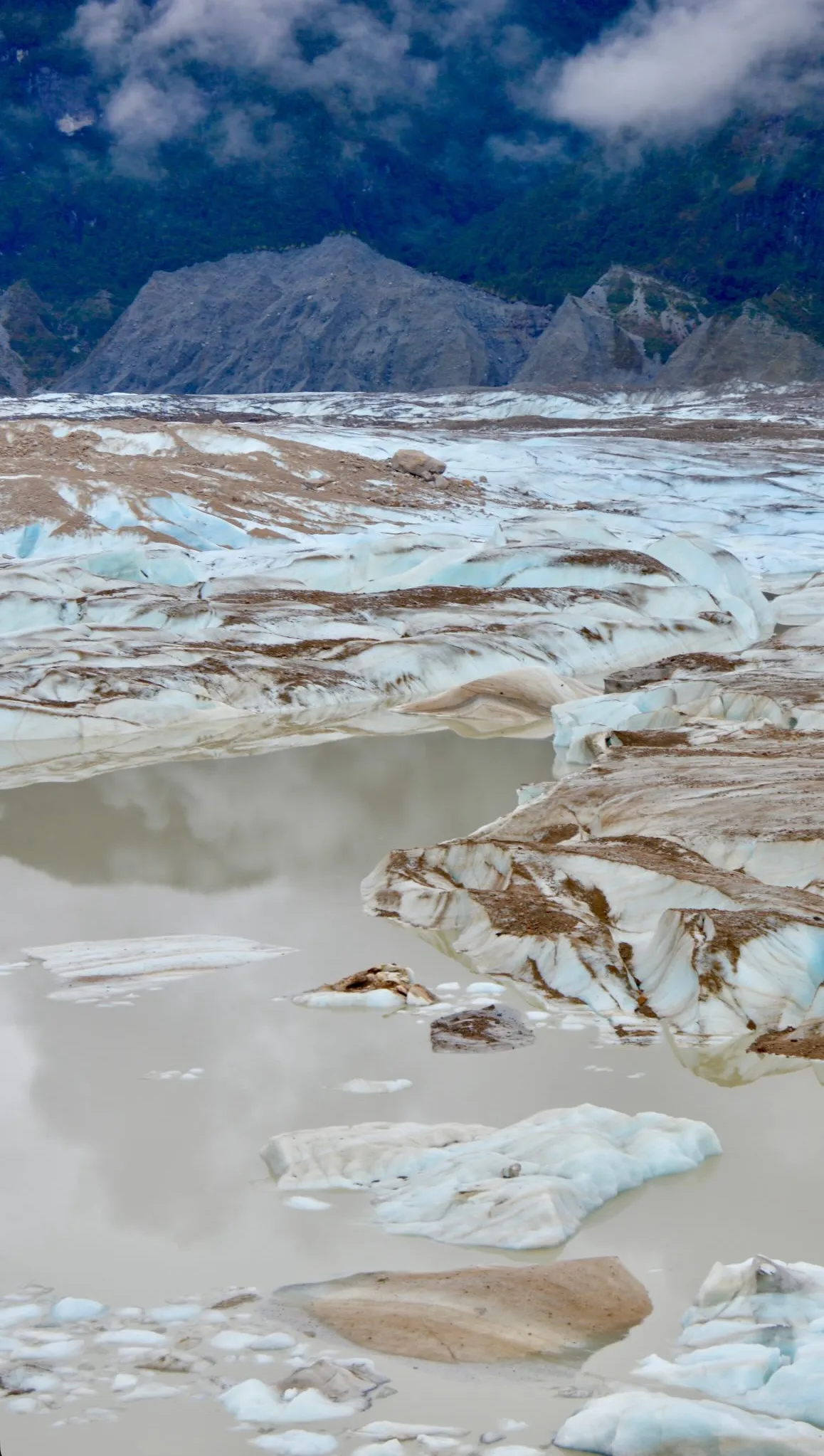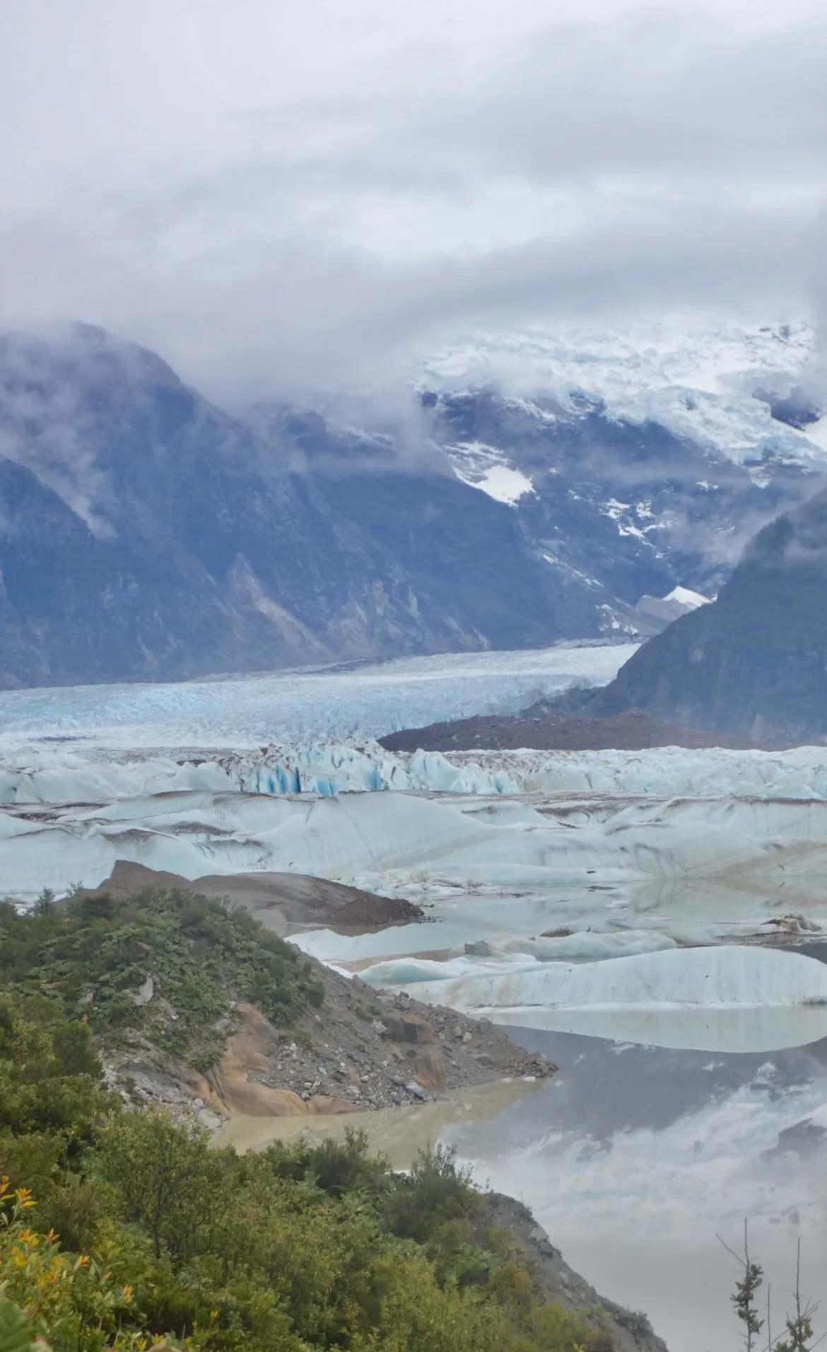 Desde el mirador principal, el Glaciar Exploradores se mostraba en toda su grandeza y fragilidad. Las grietas en su superficie contaban la historia de un retroceso imparable. Los témpanos que se desprendían flotaban como islas efímeras en la laguna a sus pies.