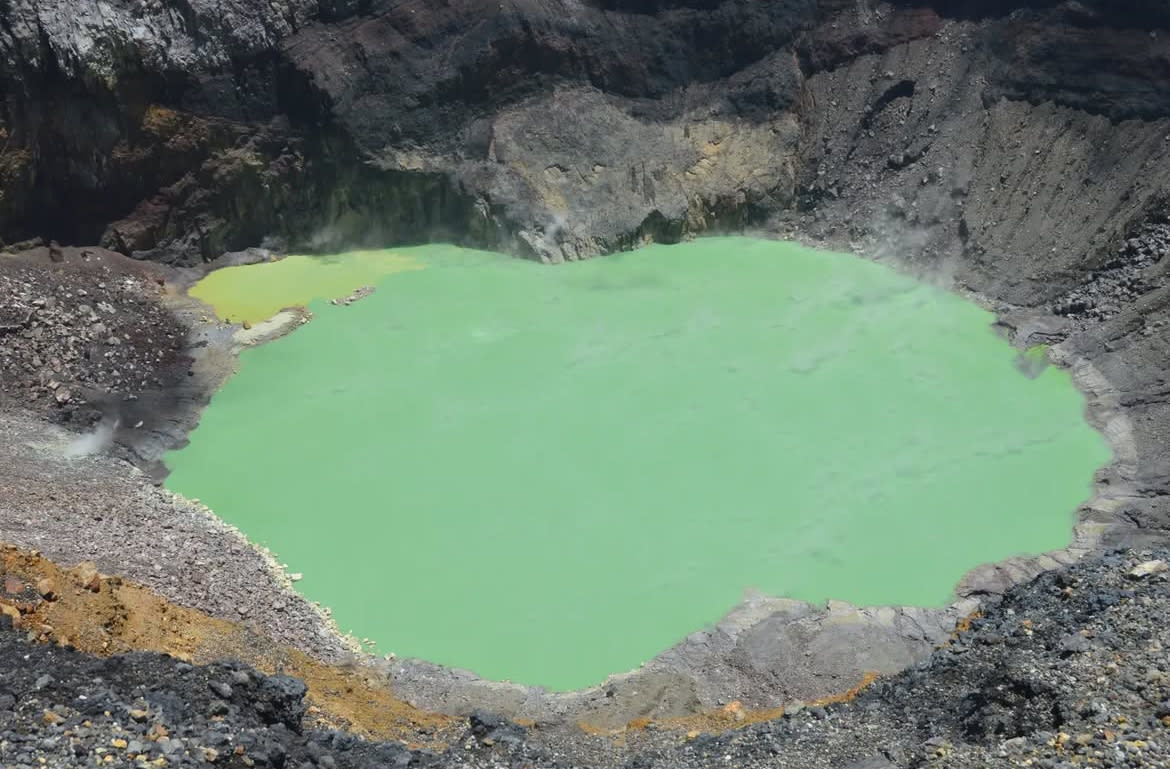 La caminata al cráter exige esfuerzo pero no técnica. Lo verdaderamente abrumador llega en la cima: el abismo se abre de pronto y, en su centro, una laguna de azufre brilla con un verde casi irreal. Las aguas burbujean lentamente, liberando vapores ásperos que huelen a la entraña misma de la tierra. Los minerales suspendidos en el agua transforman el color con cada nube que pasa, como si el volcán respirara en matices que ninguna cámara alcanza a retener.