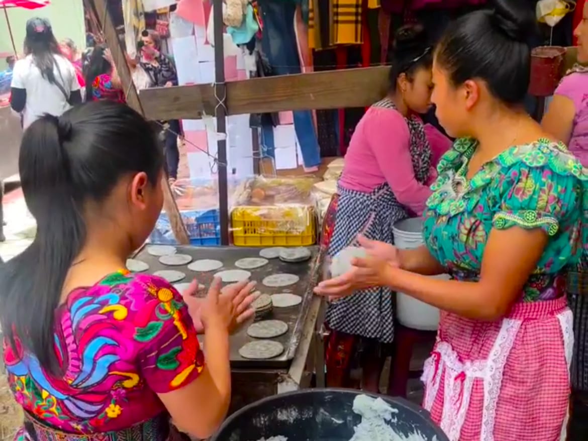 El estómago también tuvo su liturgia. Probé *chuchitos* humeantes, bebí atol servido en bolsas plásticas, y observé un espectáculo irrepetible: un pastor avanzaba entre el gentío con una soga de la que pendían diez cabras. Cuando alguien levantaba la mano, se detenía, sacaba un vaso de plástico y ordeñaba allí mismo al animal. En segundos, el comprador se llevaba su leche tibia recién extraída. Tres quetzales por un sorbo que borraba siglos de distancia entre lo ancestral y lo contemporáneo. Esa escena, más que pintoresca, era la prueba viva de que Chichicastenango no necesita museos: su genuinidad circula entre la multitud con la misma naturalidad que un rezo o una transacción.