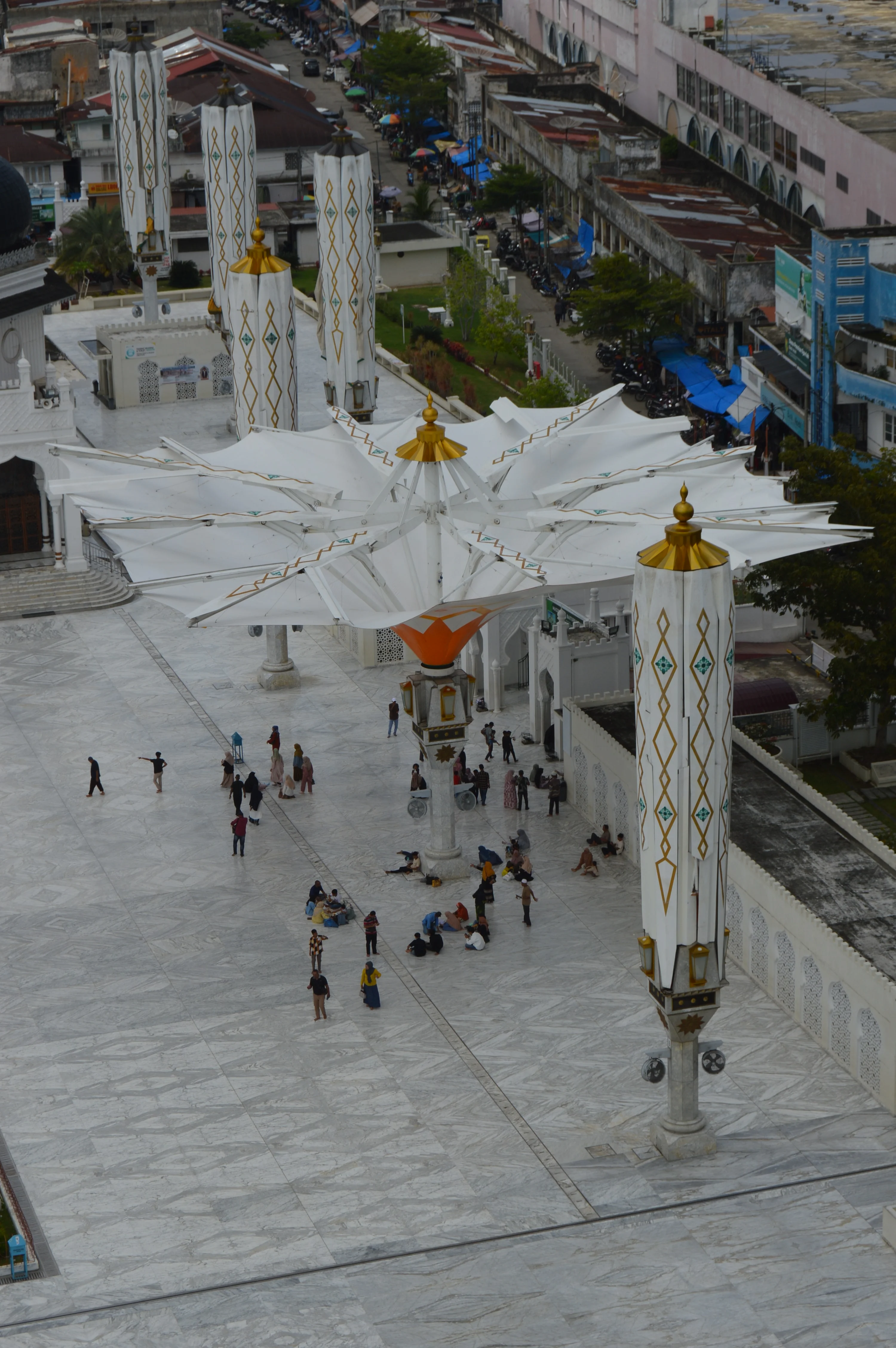 Al norte, Banda Aceh guarda la memoria del mar. El malecón no es solo un recorrido: es la línea donde la costa pactó con el océano después de la catástrofe. La mezquita Baiturrahman se yergue como eje inmóvil, sus cúpulas blancas filtrando la fe en medio de la ruina y la reconstrucción. El kopi tubruk, espeso y oscuro, es la tinta con que la ciudad sigue dibujando su presente.