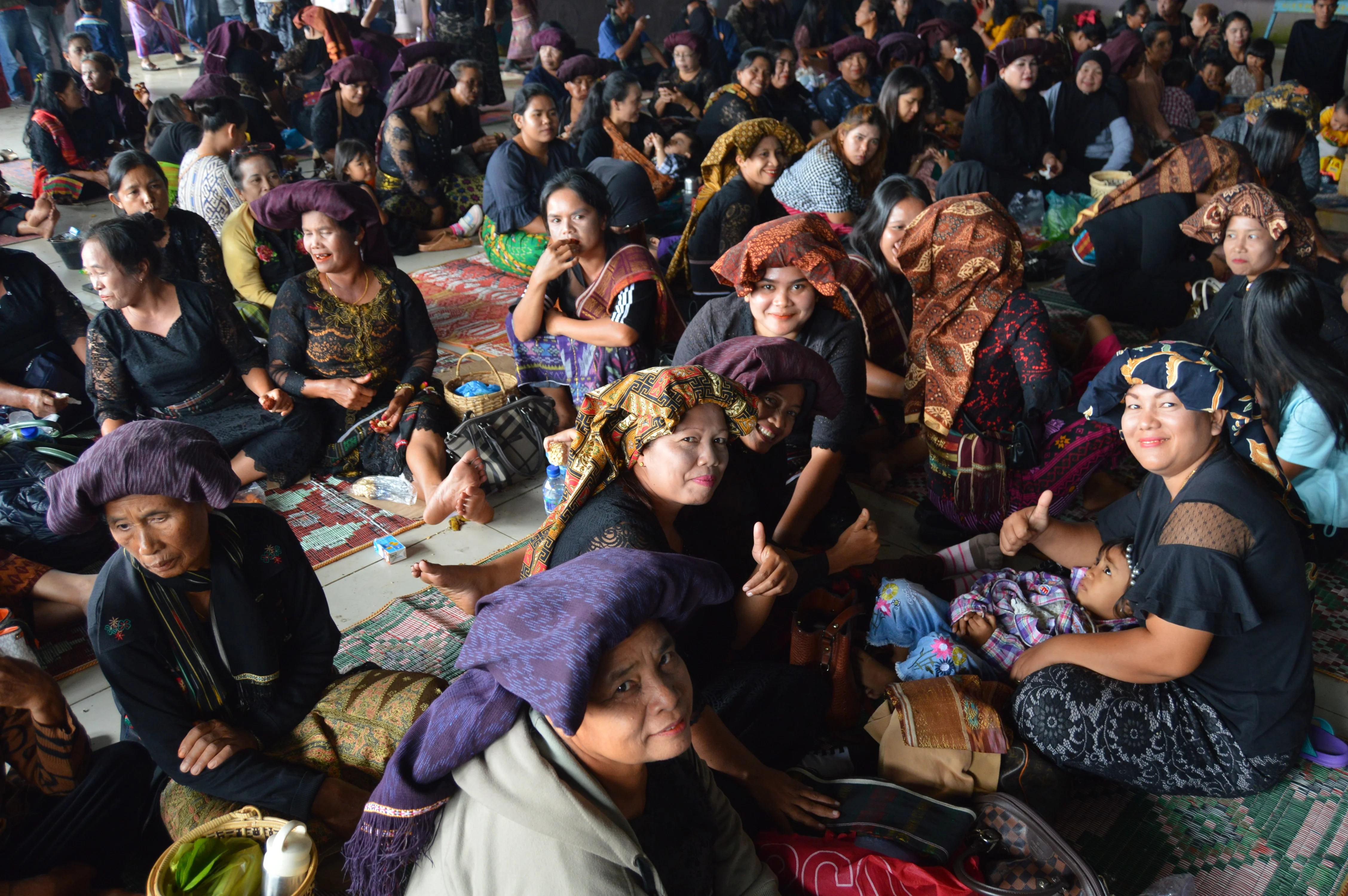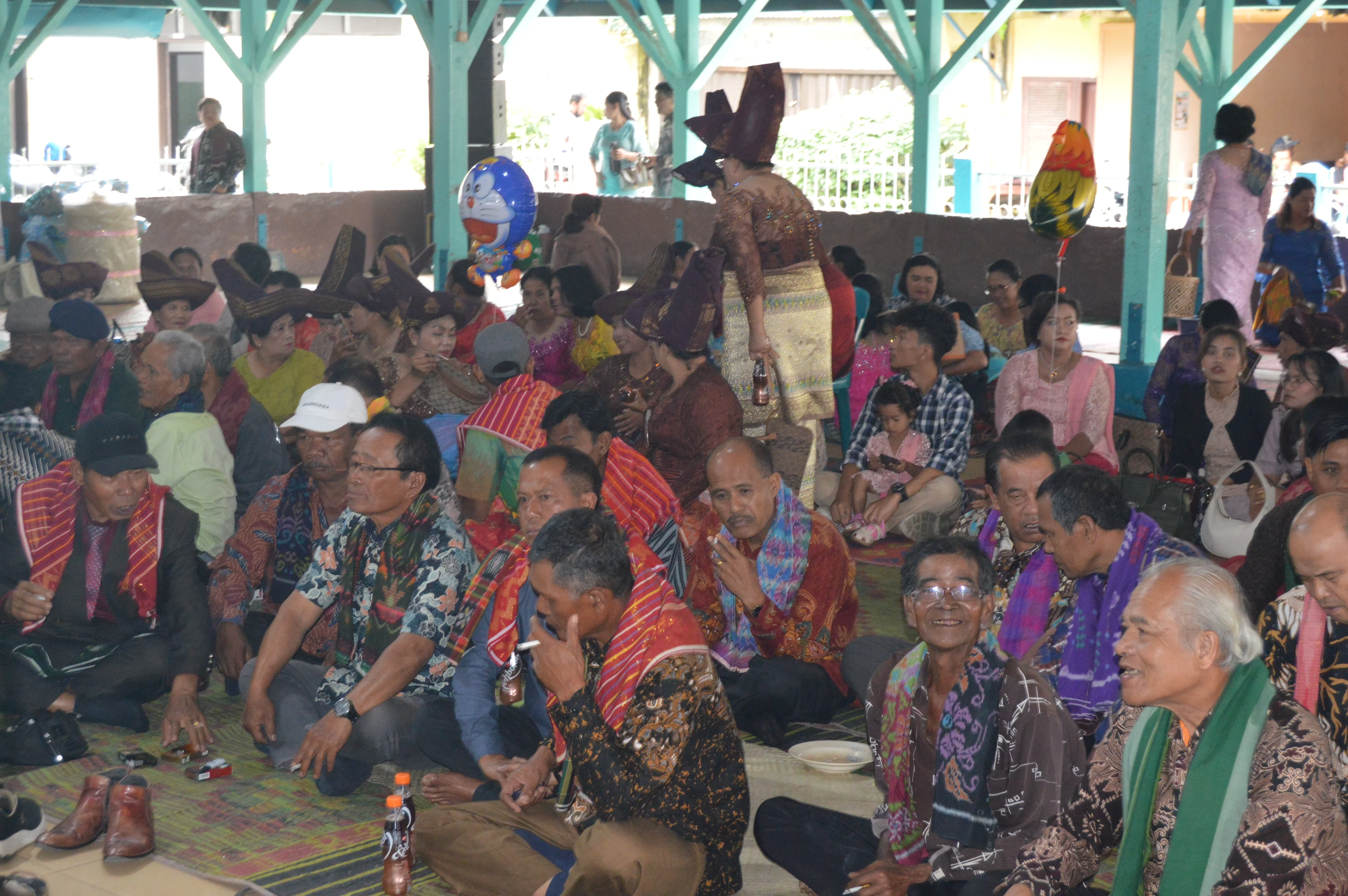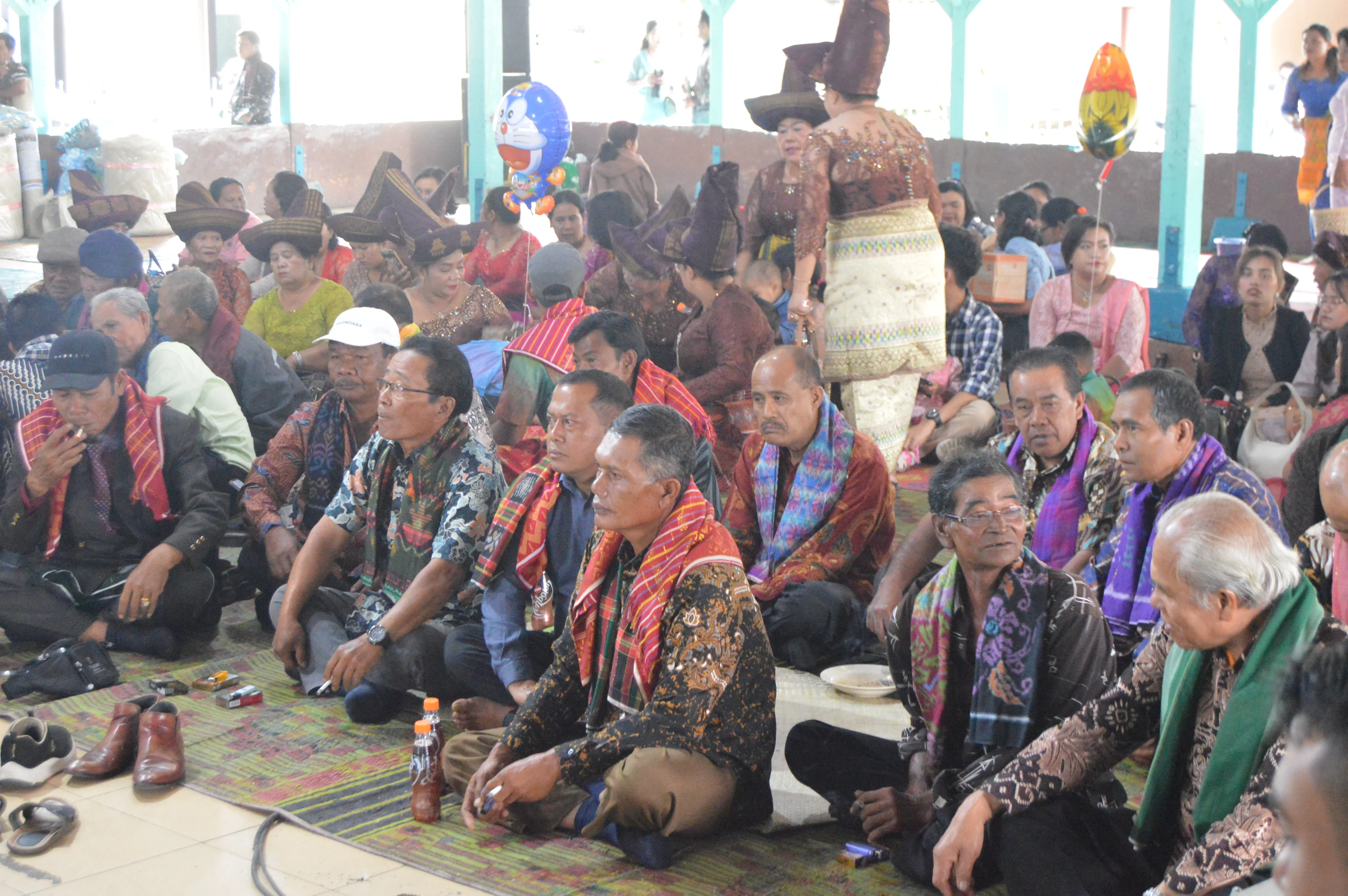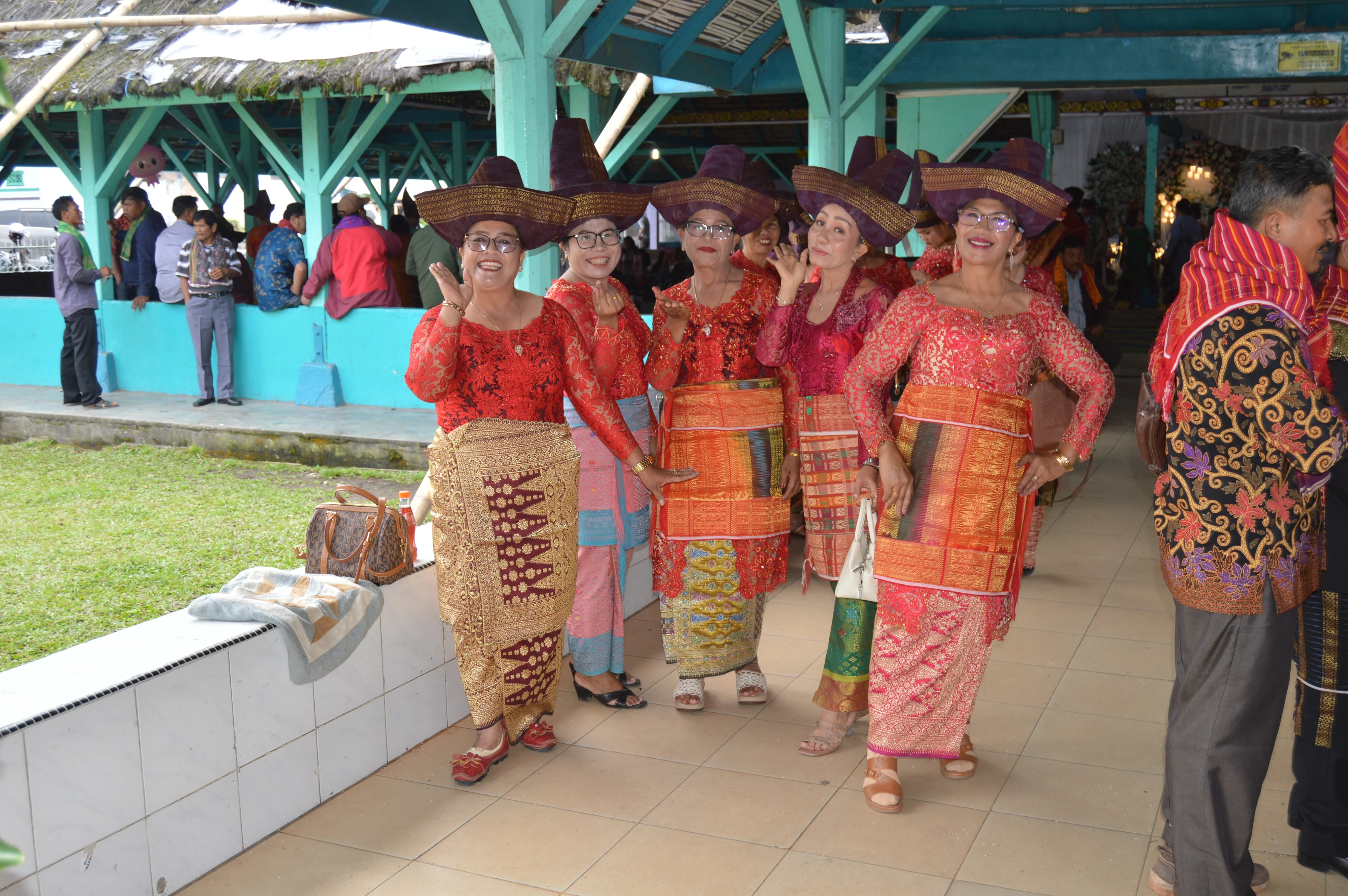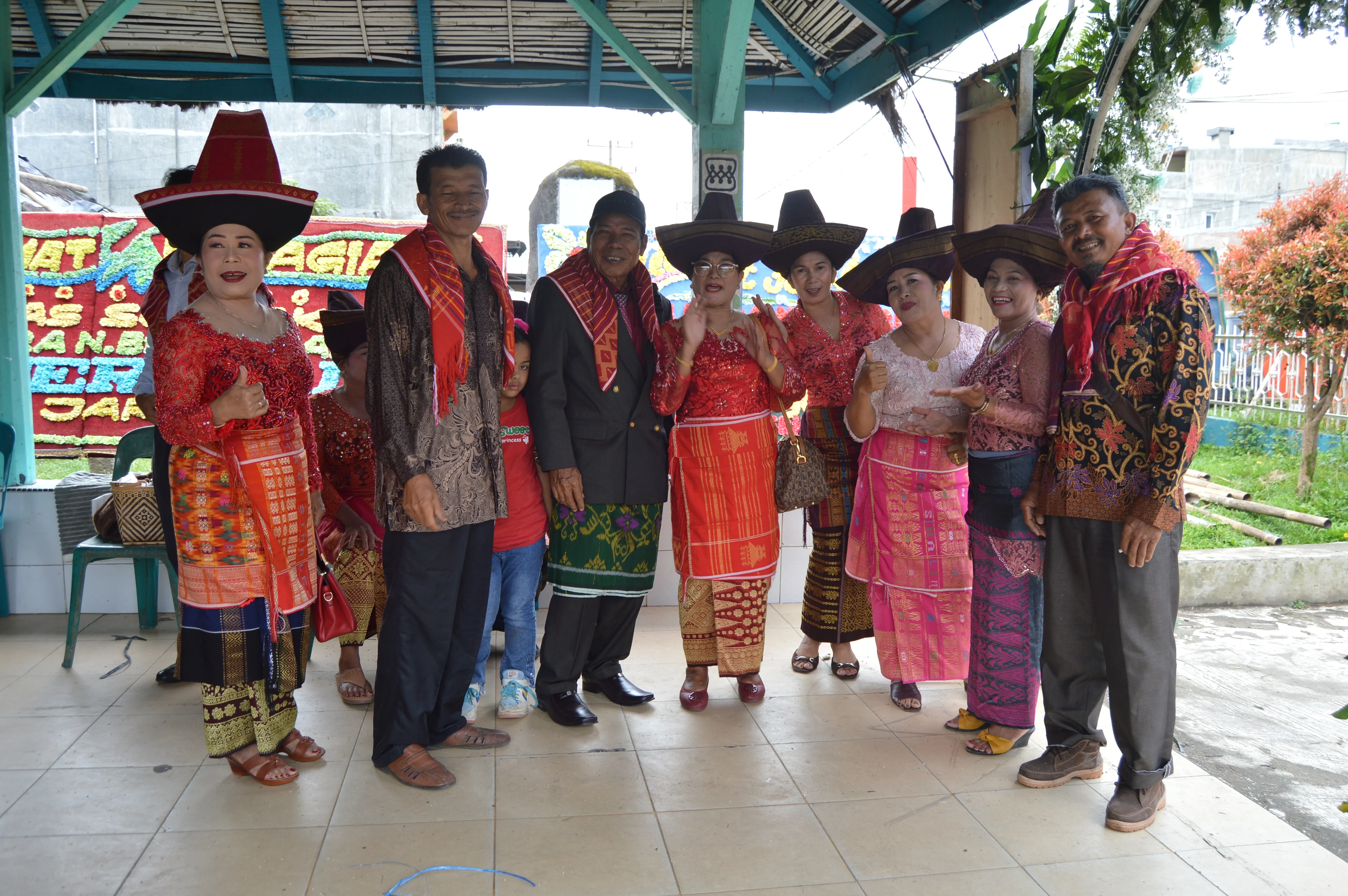El final es el ulaon unjuk: banquetes interminables con saksang y napinadar. Allí las telas ulos viajan de mano en mano como contratos vivos. Cada patrón significa algo —ulos ragidup para desear larga vida, ulos sadum para fertilidad—. La tela es el acta, el harga de la novia indica su clan, y los hombres llevan el surisuri ceremonial en la cabeza. En esos días la casa se llena de ritual, música y signos que conectan a generaciones enteras.