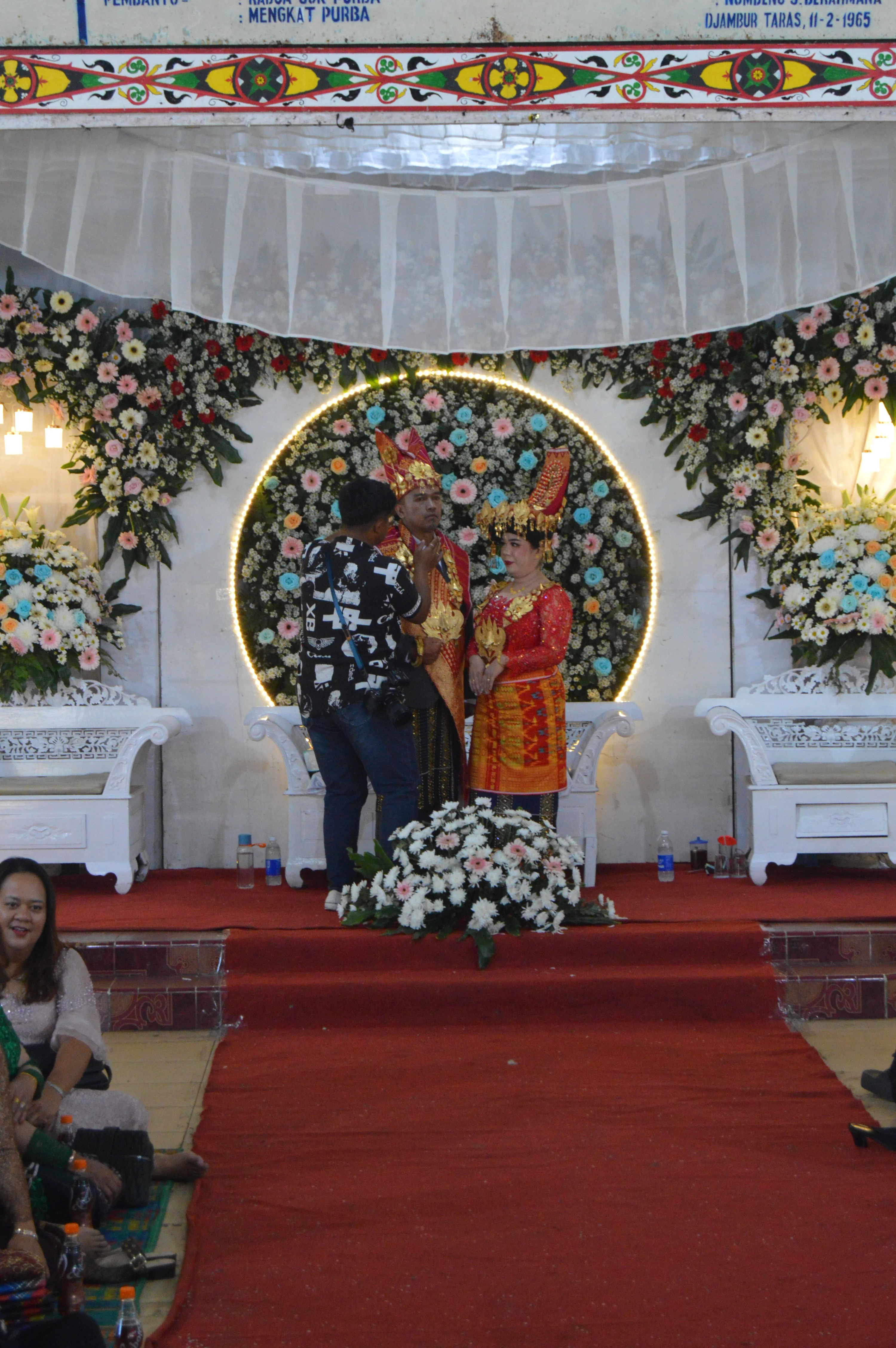 Pero el registro fundamental llegó el sábado, en la misma vereda donde la vida y la muerte mostraban sus polaridades complementarias. Me invitaron sin trámite: solo pasé por ahí, me asomé curioso y una profesora de inglés local me abrió la puerta con amabilidad. Terminé dentro de la carpa hablando con la familia de los novios; me pedían fotos y, por un rato, fui el bulek más famoso del mundo. Primero, la boda batak: un pico agudo de alegría pura, vestidos coloridos como aurículas abriéndose al flujo del festejo, cantos que elevaban el segmento ST hacia el éxtasis colectivo. El padre de la novia abrazándome fue una descarga de potasio directa al corazón—"tierra de Messi" como catéter de fraternidad que atravesaba todas las barreras culturales.
