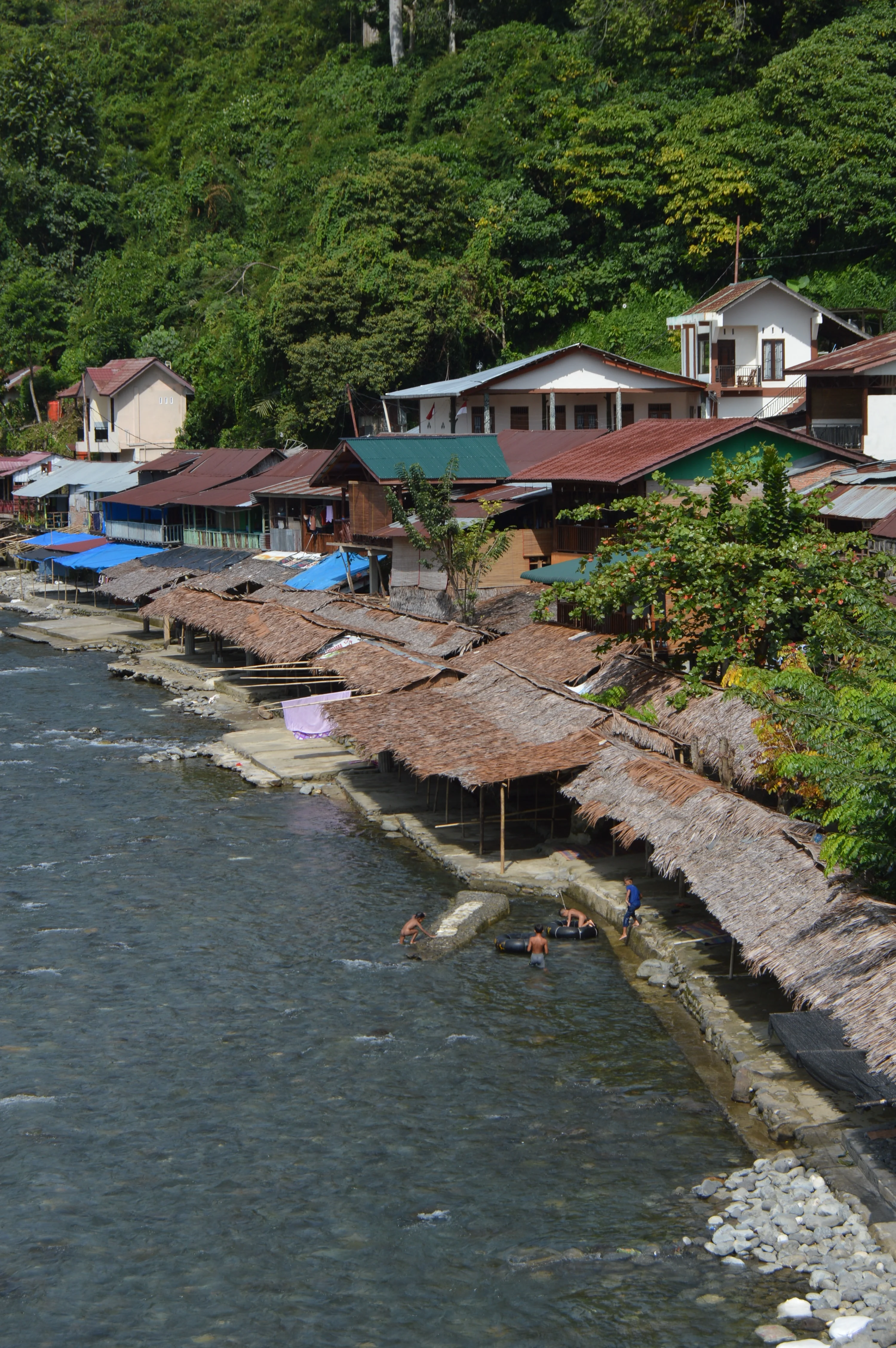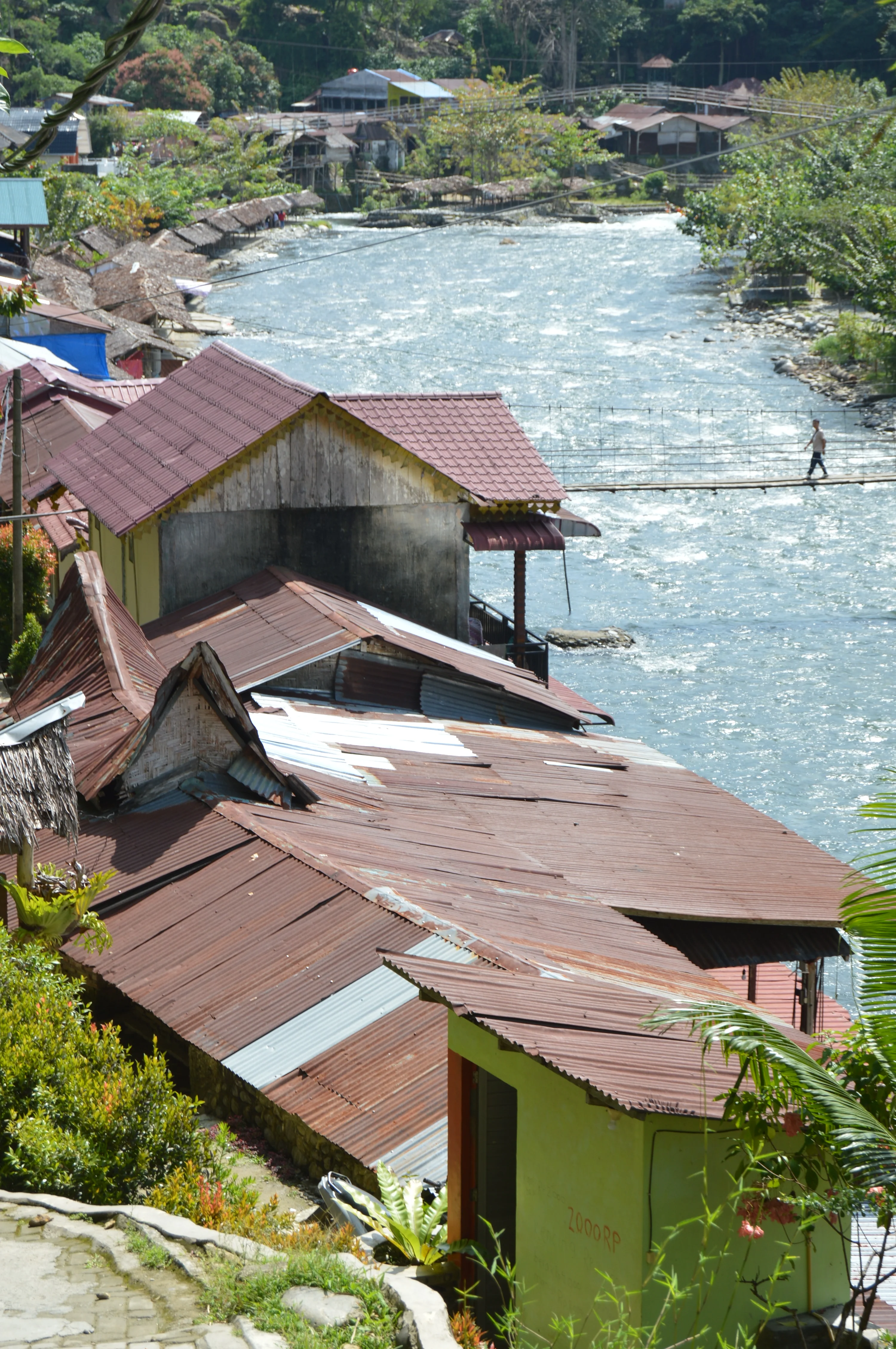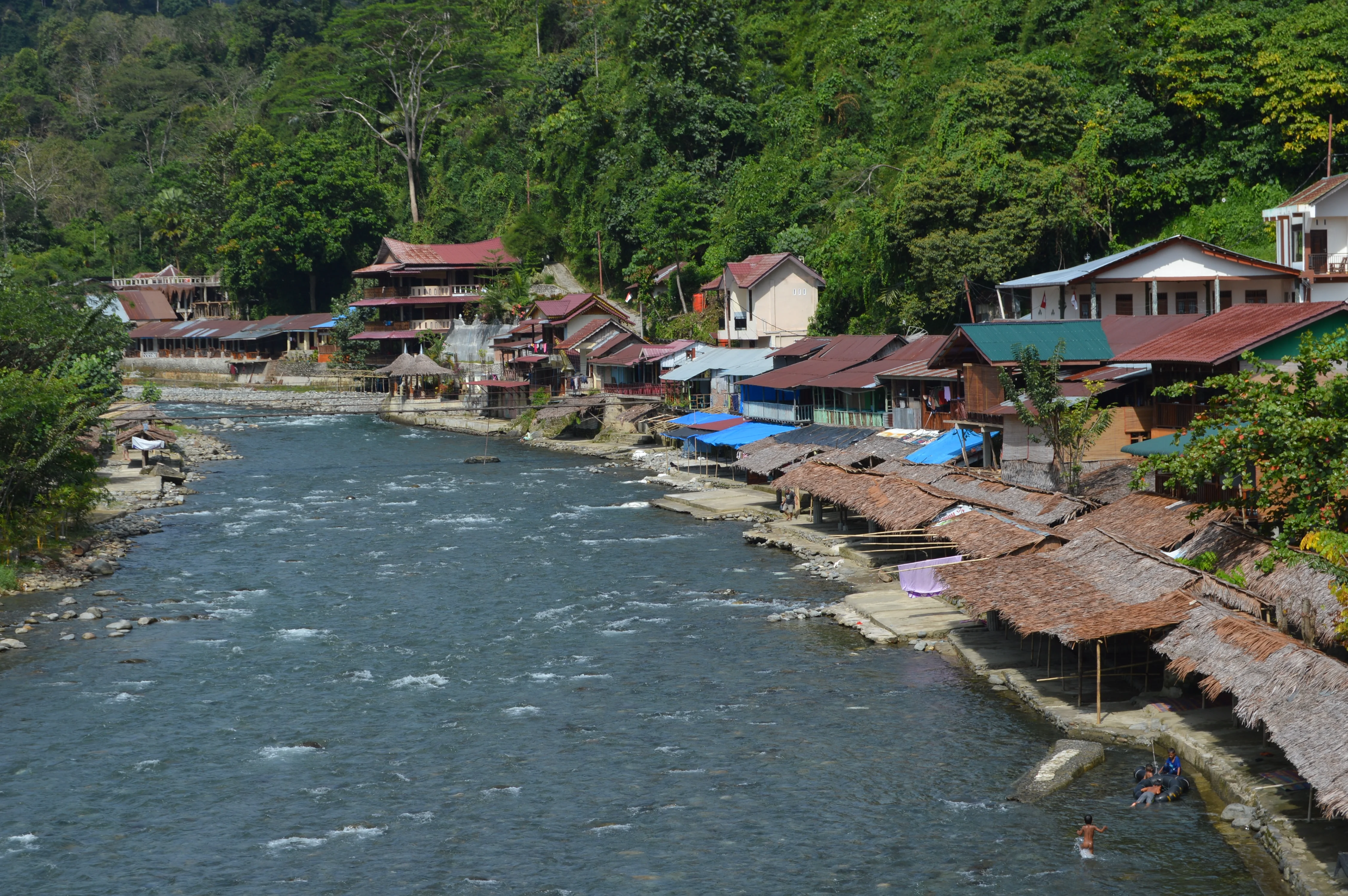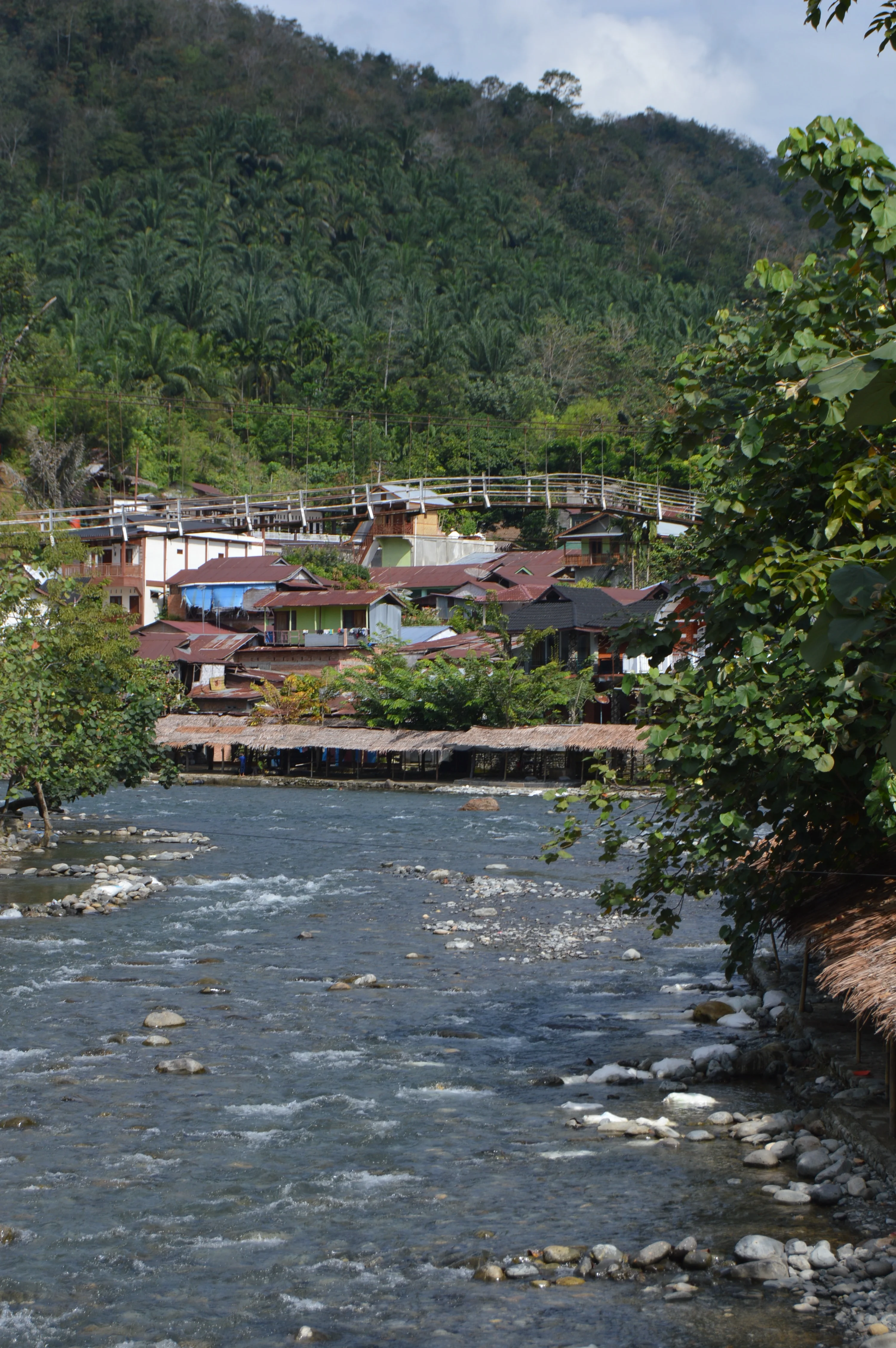 • Bukit Lawang: Ecolodge o bungalow frente al río Bohorok 100,000-150,000 IDR (~7-10 USD). La experiencia de dormir con el sonido del río y la selva tropical es única. Muchos lugares incluyen desayuno y tienen terrazas con hamacas frente al río. El lugar es famoso por los orangutanes; casi todos los alojamientos pueden organizar trekkings de 1, 2 o 3 días con guías locales. Los paquetes completos (hospedaje + trekking de 2 días + comidas + guía) suelen costar 1,500,000-2,000,000 IDR (~130-250 USD) por persona, dependiendo de la cantidad de días en la selva. Las guesthouses ofrecen dormir gratis si contratas con ellos el tour. Yo fui por mi cuenta. Tuve problemas y tuve que volver cuando me encontró un guia caminando solo y me tuve que volver. Casi todas las guesthouses son europeas. Es, por lejos, el lugar menos auténtico de Sumatra.
