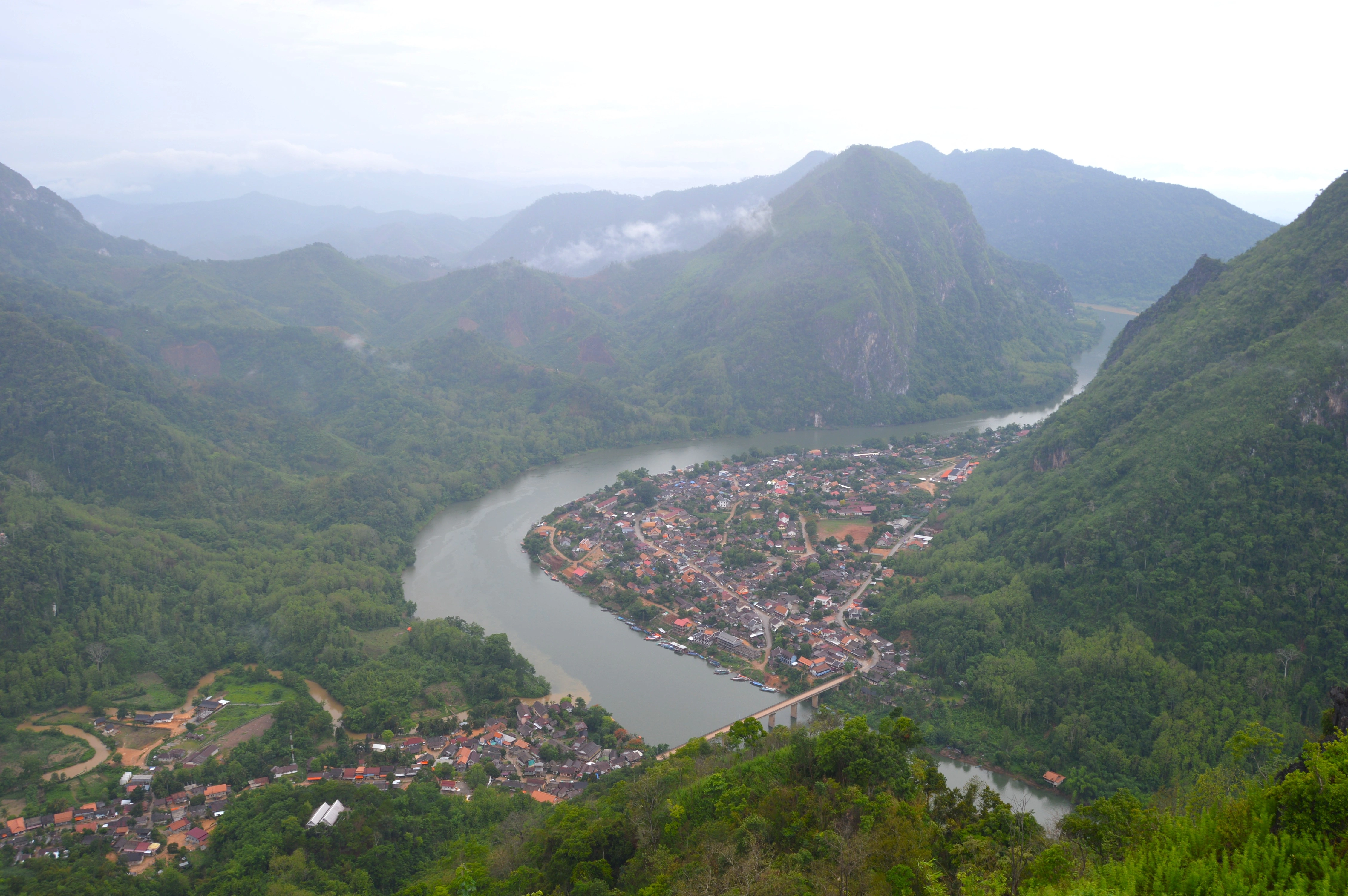 Muang Khua fue mi puerta de entrada a Laos, un pueblo detenido en ese espacio extraño donde nada parece urgente. Llegué a la mañana después del cruce desde Vietnam, todavía con el ritmo acelerado de Dien Bien Phu en el cuerpo. Pero bastó poner un pie en la calle principal para sentir que algo se había corrido de lugar: la gente caminaba despacio, los saludos eran breves pero sinceros, y el Nam Ou bordeaba el pueblo con la calma de quien ya vio demasiadas historias pasar.