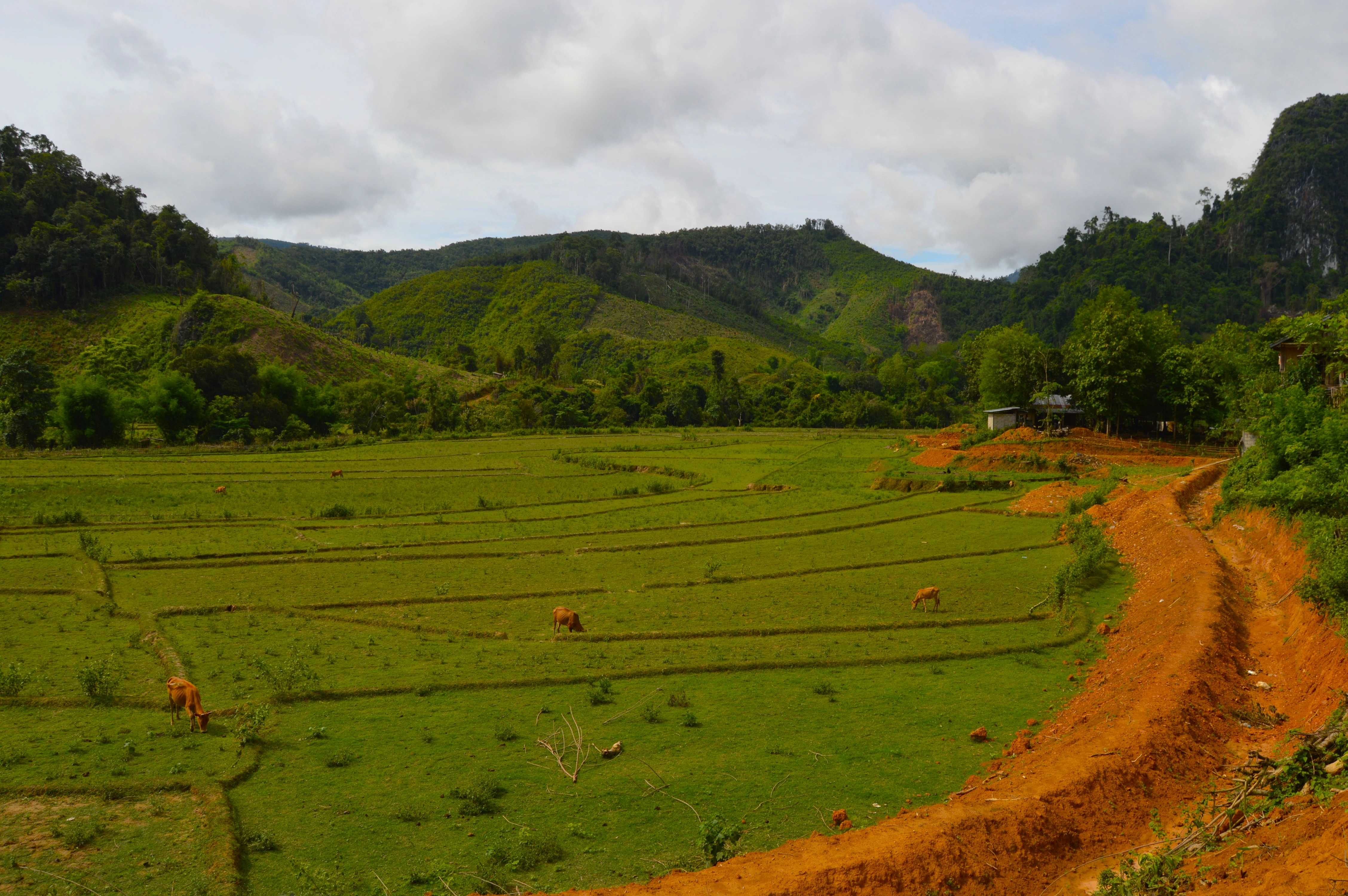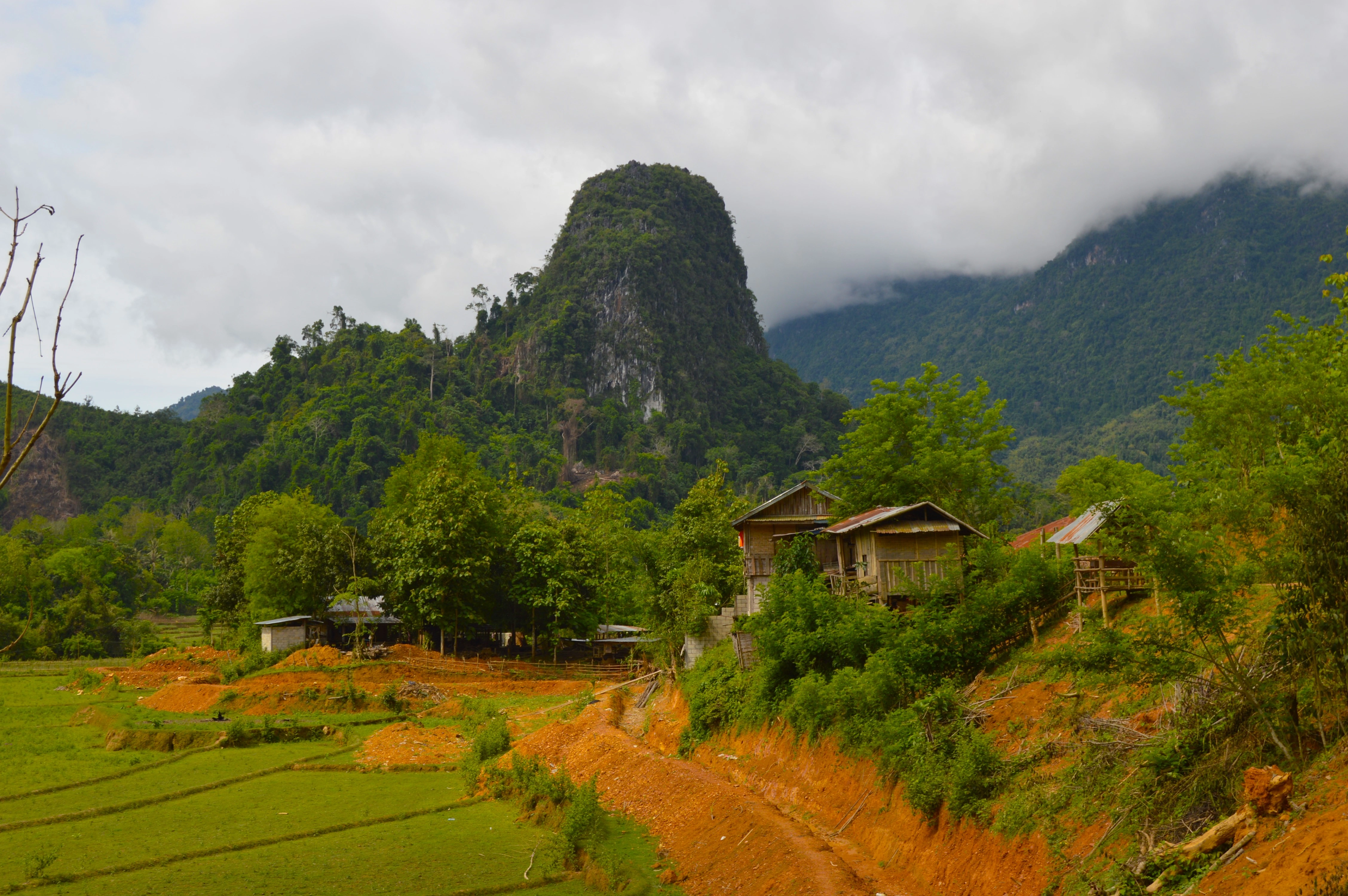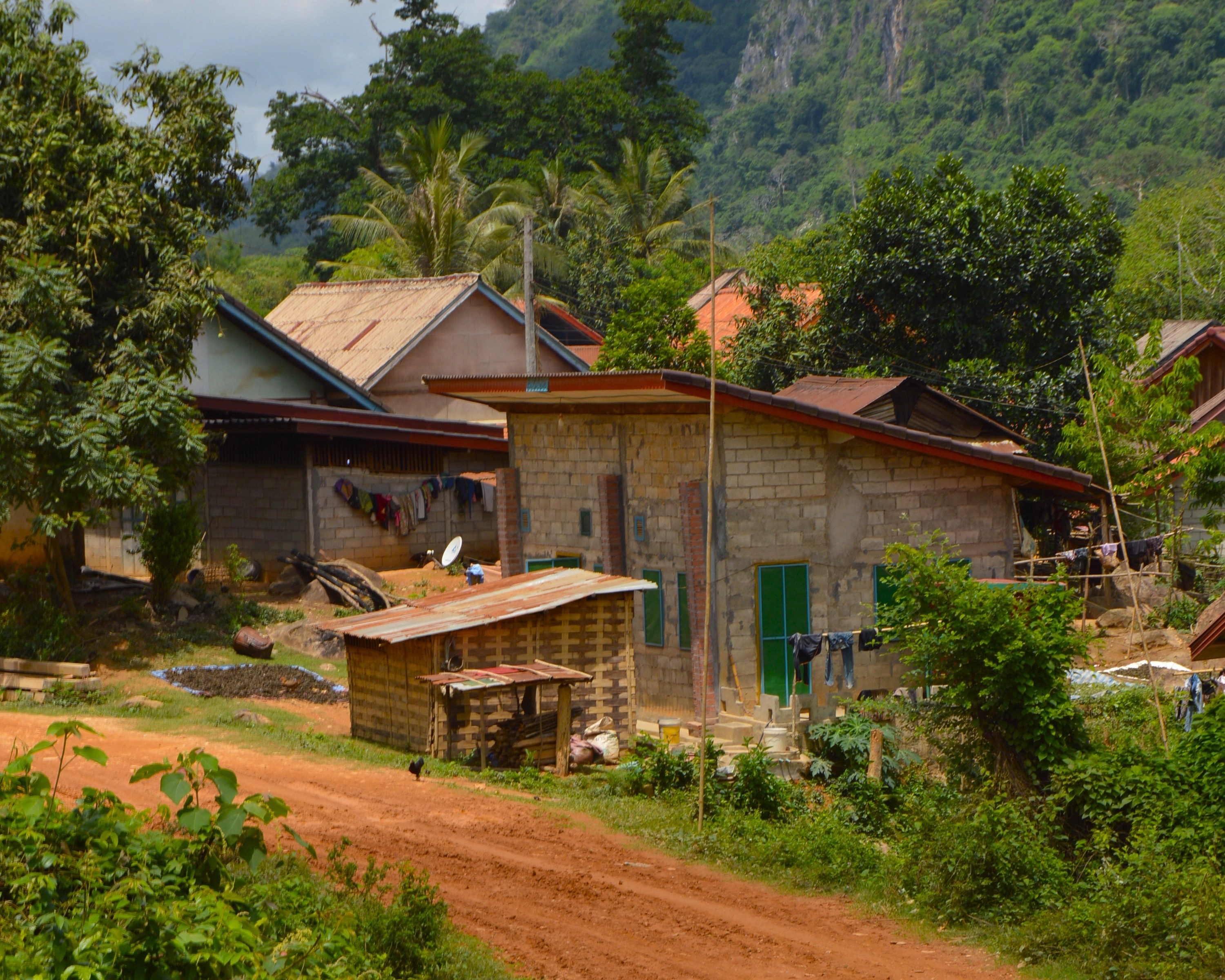 Caminé de vuelta de la cueva con un nudo en la garganta. El paisaje seguía siendo hermoso —cerros verdes, gallinas caminando sin apuro, olor a leña húmeda—, pero todo tenía una capa nueva, más pesada. En Laos la belleza no borra la tragedia: convive con ella.