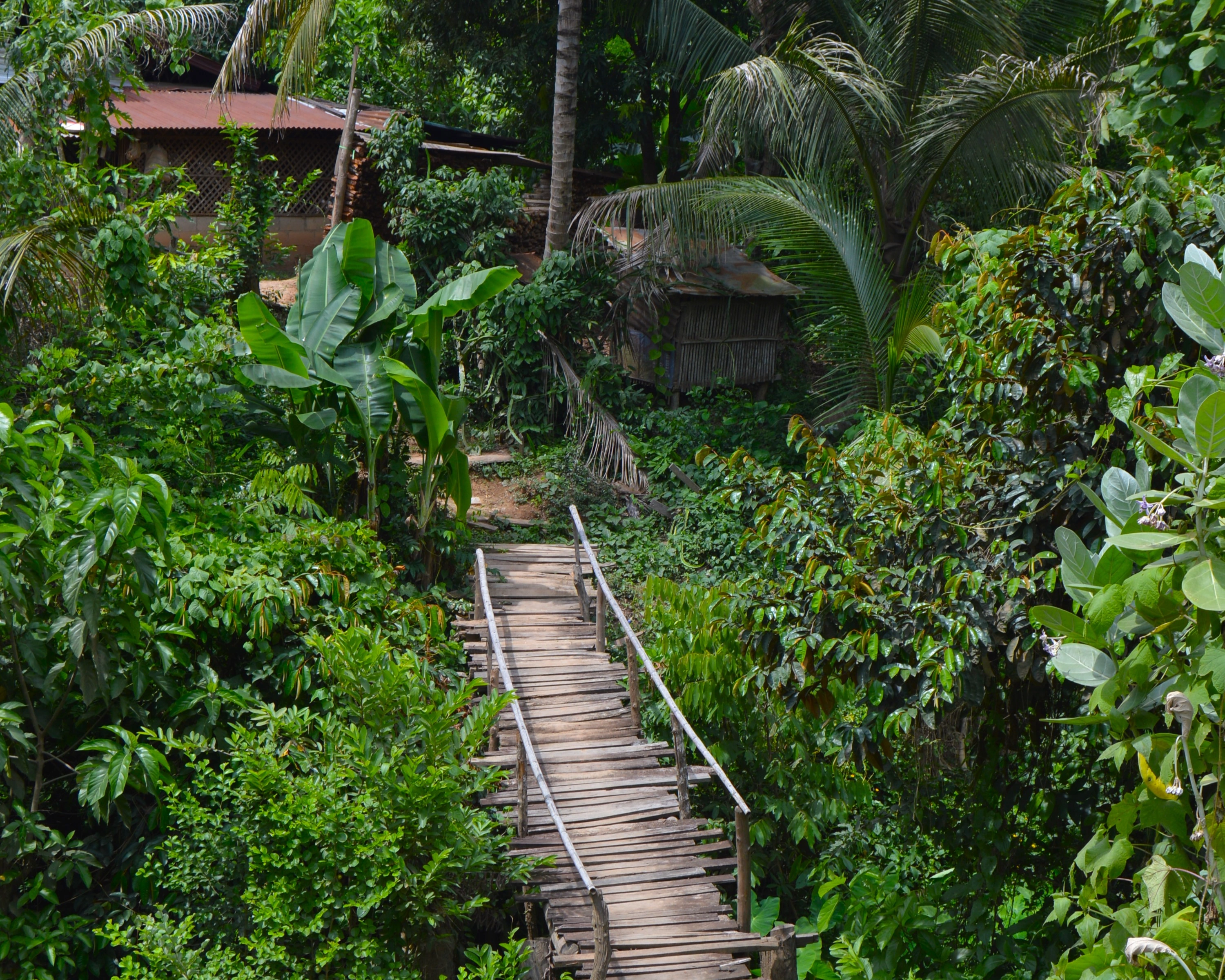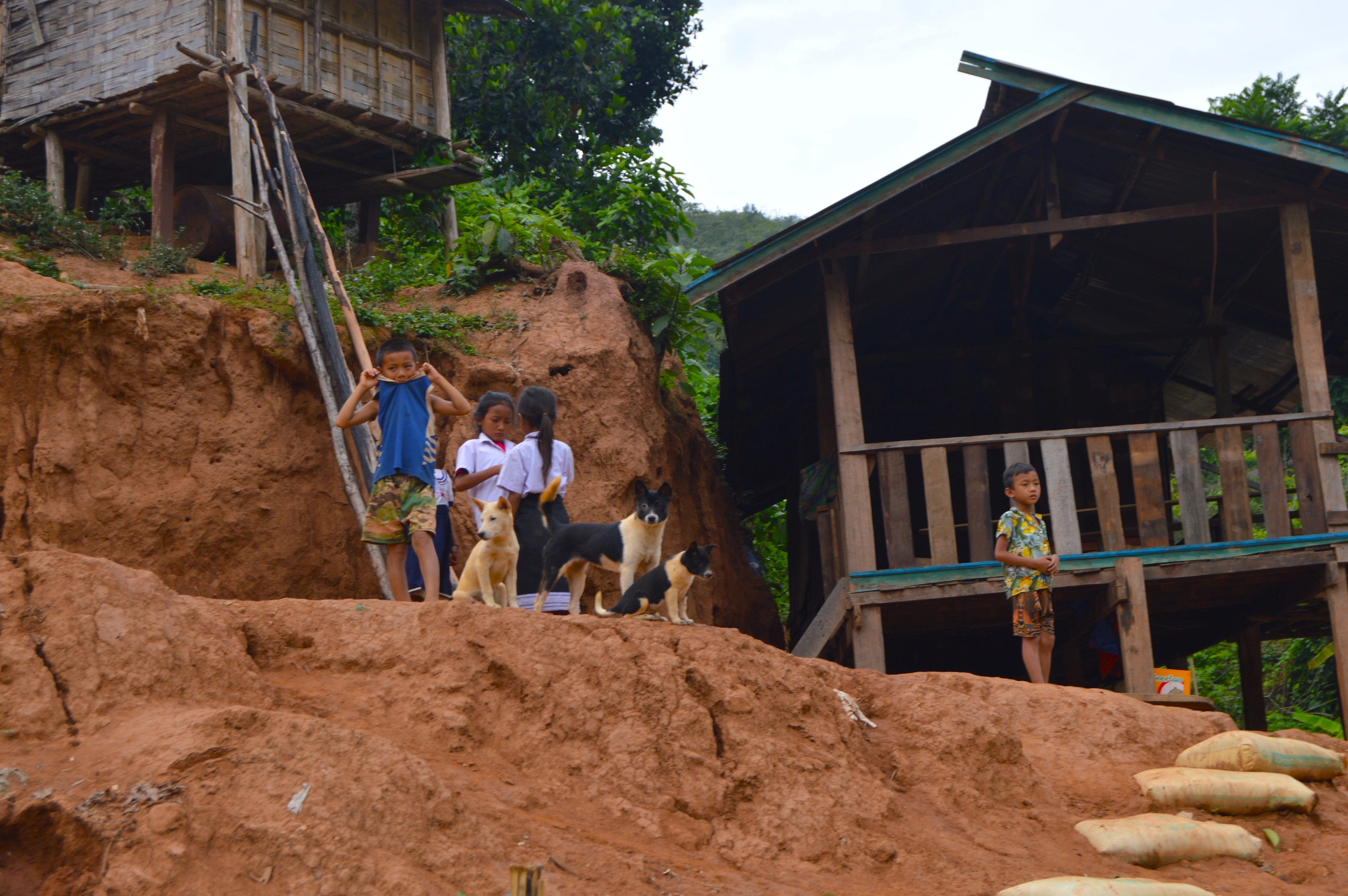 En los senderos el pueblo se abría como un álbum de escenas sueltas: mujeres cargando leña sobre la espalda, hombres afilando machetes sin apuro, niños corriendo detrás de gallos que parecían más inteligentes que ellos. Y entre cada tramo aparecían aldeas diminutas —Ban Sop Xieng, Ban Hoi, Ban Na Luang— donde los saludos se multiplicaban como si la cortesía fuera parte del clima. En Ban Na Luang una mujer me regaló un mango sin decir una sola palabra. Lo extendió, sonrió y siguió caminando. Nada más. Ese gesto vale más que cualquier itinerario.