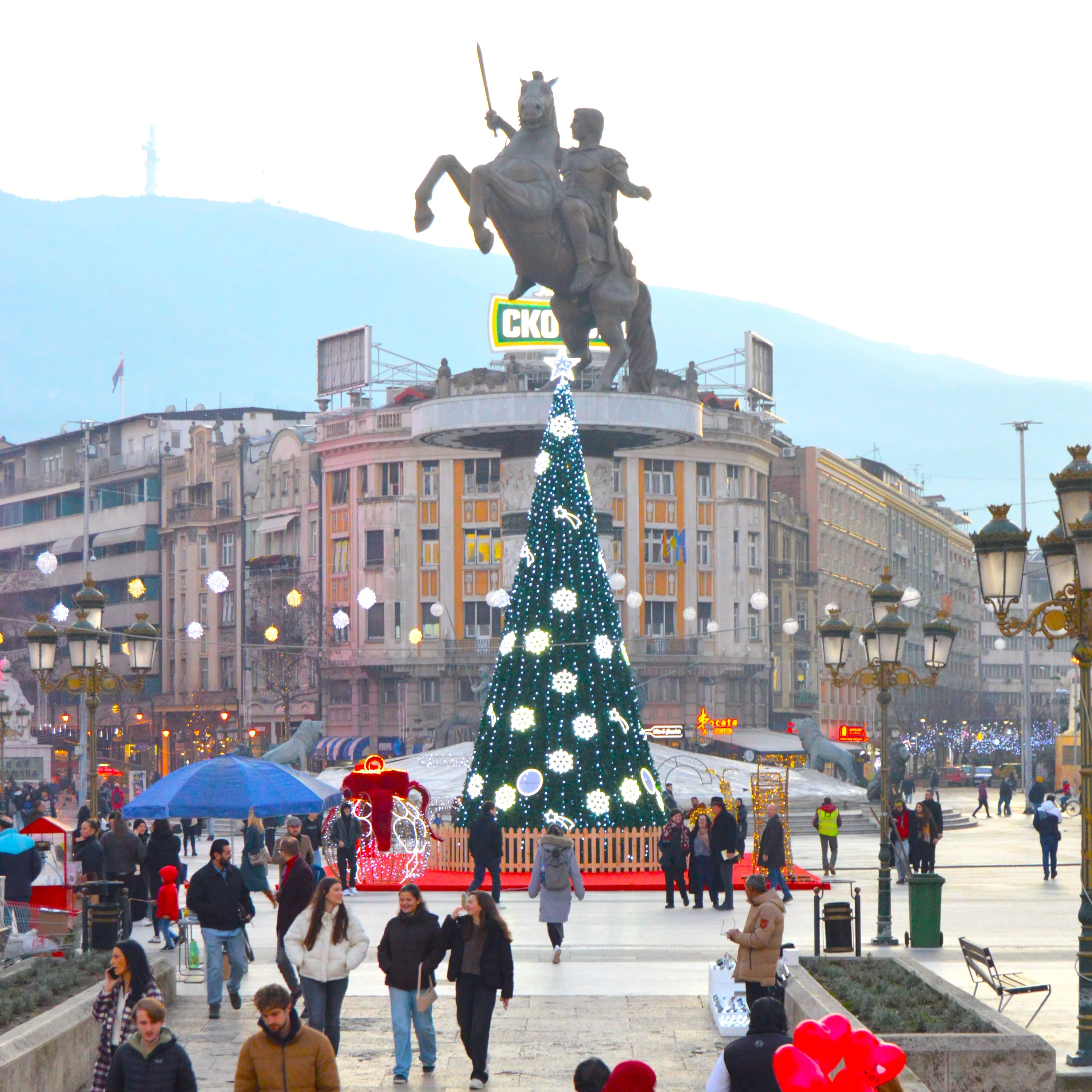 Diciembre convirtió las calles en un escenario sin actores. Las estatuas —esa legión de soldados de plomo gigantes— parecían vigilarme, y me pregunté: ¿Quién engaña a quién aquí? Las fachadas neoclásicas tienen la rigidez de un cadáver maquillado. La verdadera piel de Skopie, sin embargo, late en el Bazar Viejo con su humo de kebabs, monedas otomanas sobre mostradores polvorientos, y el roce de las chancletas de un abuelo contra adoquines gastados.