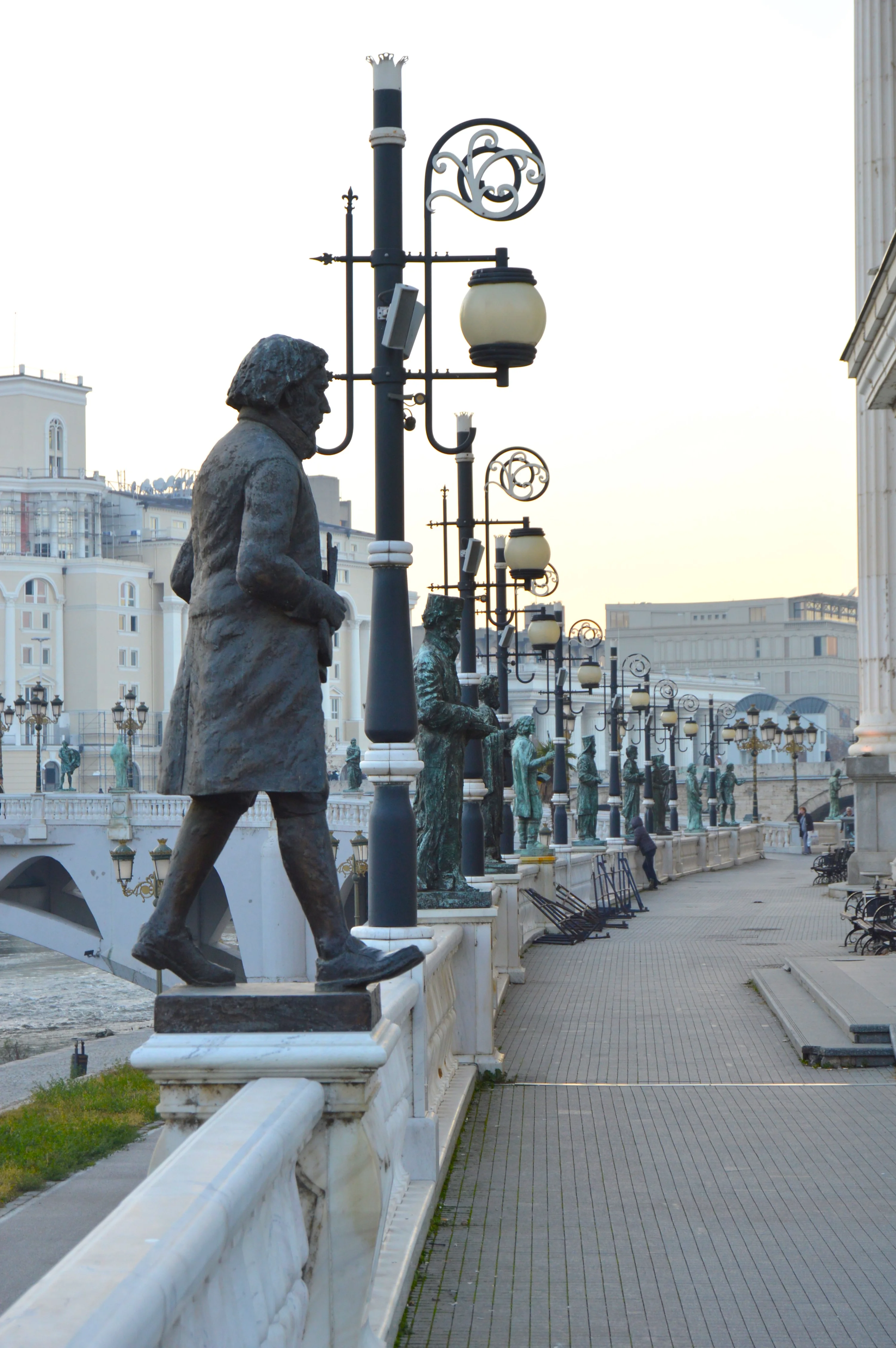 Proyecto Skopje 2014: El centro de Skopje fue rediseñado con estatuas gigantes, edificios neoclásicos y fuentes. El resultado es controvertido: algunos lo encuentran kitsch, otros impresionante. La estatua del Guerrero a Caballo (Alejandro Magno) en la Plaza Macedonia es el símbolo más visible.