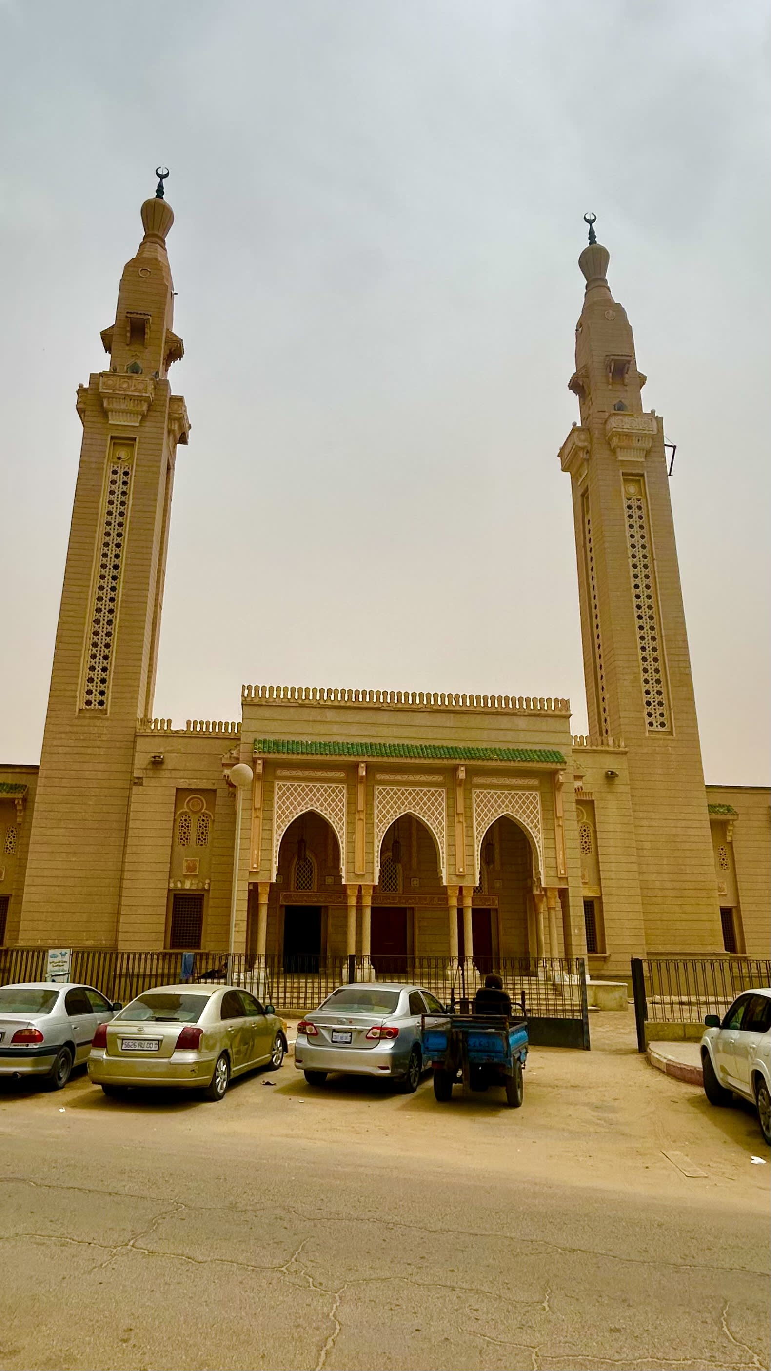 Nouakchott surgió sin cimientos firmes y se extendió como mancha de aceite sobre arena. En sus calles, taxis desvencijados transportan cabras en el techo, cibercafés detenidos en los noventa siguen abiertos como fósiles tecnológicos, y talleres improvisados devuelven vida a neumáticos ardiendo en caucho derretido. La ciudad late en improvisación constante. Rostros anónimos convierten cada salam aleikum en invitación a un vaso de té de menta, y la Gran Mezquita, con minaretes que cortan el horizonte, se alza como eje espiritual que ordena la jornada.