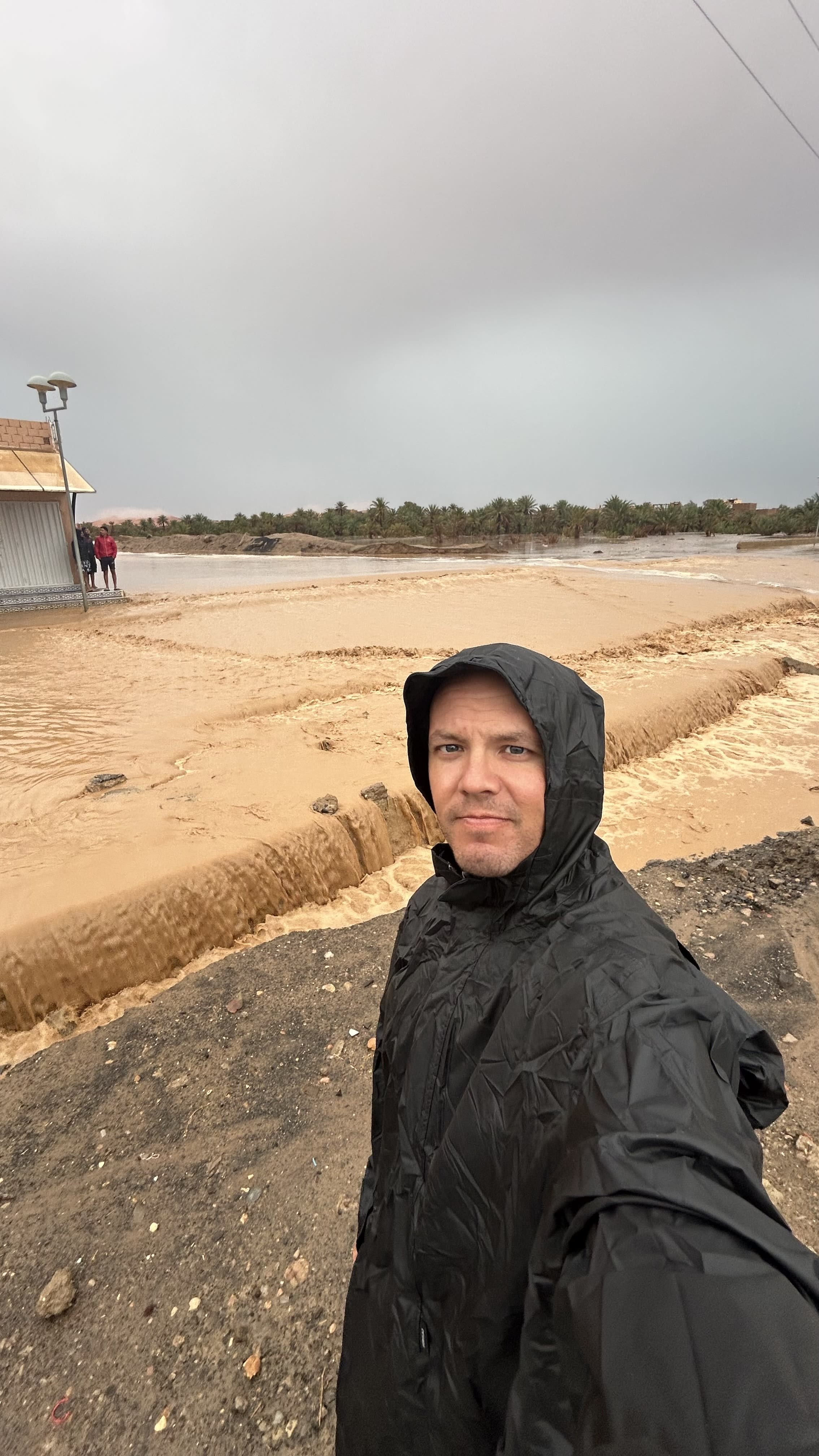 Merzouga es la comedia tragicómica del turismo global. Un sistema que te vende un atardecer empaquetado y un silencio de pega. Pero justo cuando crees que el teatro es lo único que existe, el telón se incendia. El cielo se desata en una furia que no está en ningún folleto y convierte el decorado en algo vivo, peligroso y real. El desierto te mira desde su caos recién nacido y te escupe la verdad a la cara: lo esencial no se contrata. Es impredecible, es gratis y llega sin avisar, para recordarte que, a veces, la función más memorable es la que cancelan por lluvia.