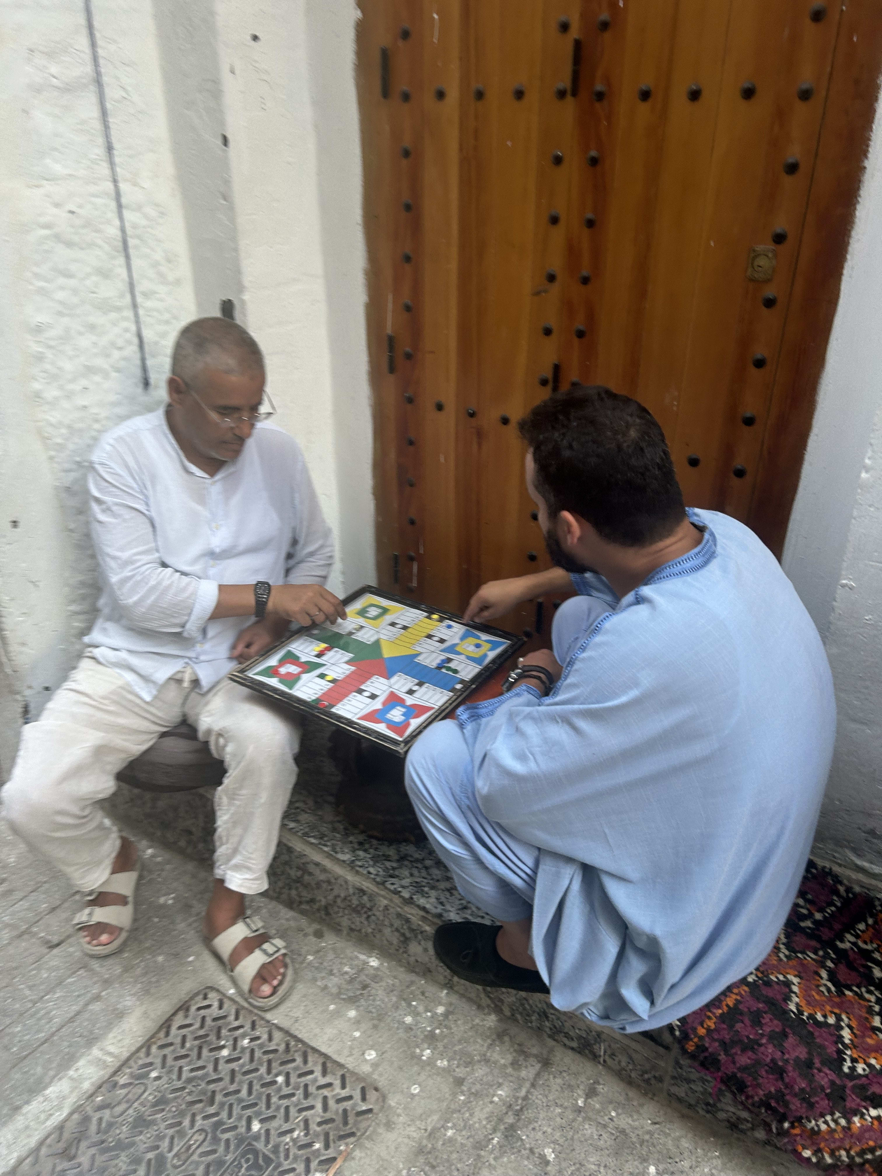 Mi despedida tuvo sabor dulce. La familia del hostal me invitó al cumpleaños de Amina, la recepcionista. Compartimos msemen —un pan dulce— bañado en miel de dátil y jugo de naranja amarga. «Vivir aquí es como estar casada con un hombre viejo —reflexionó la abuela mientras servía el té con ceremonial lentitud—: te quejas todos los días, pero no lo cambiarías por nada». Me regalaron un imán con forma de babucha. «'Cuando vuelvas, traé medio kilo de yerba mate, no seas rata', me dijo el dueño, sabiendo el significado de mezquindad en Argentina. Viendo mi cara, añadió: 'Vi una serie argentina y escuché que les dicen así a los tacaños'».