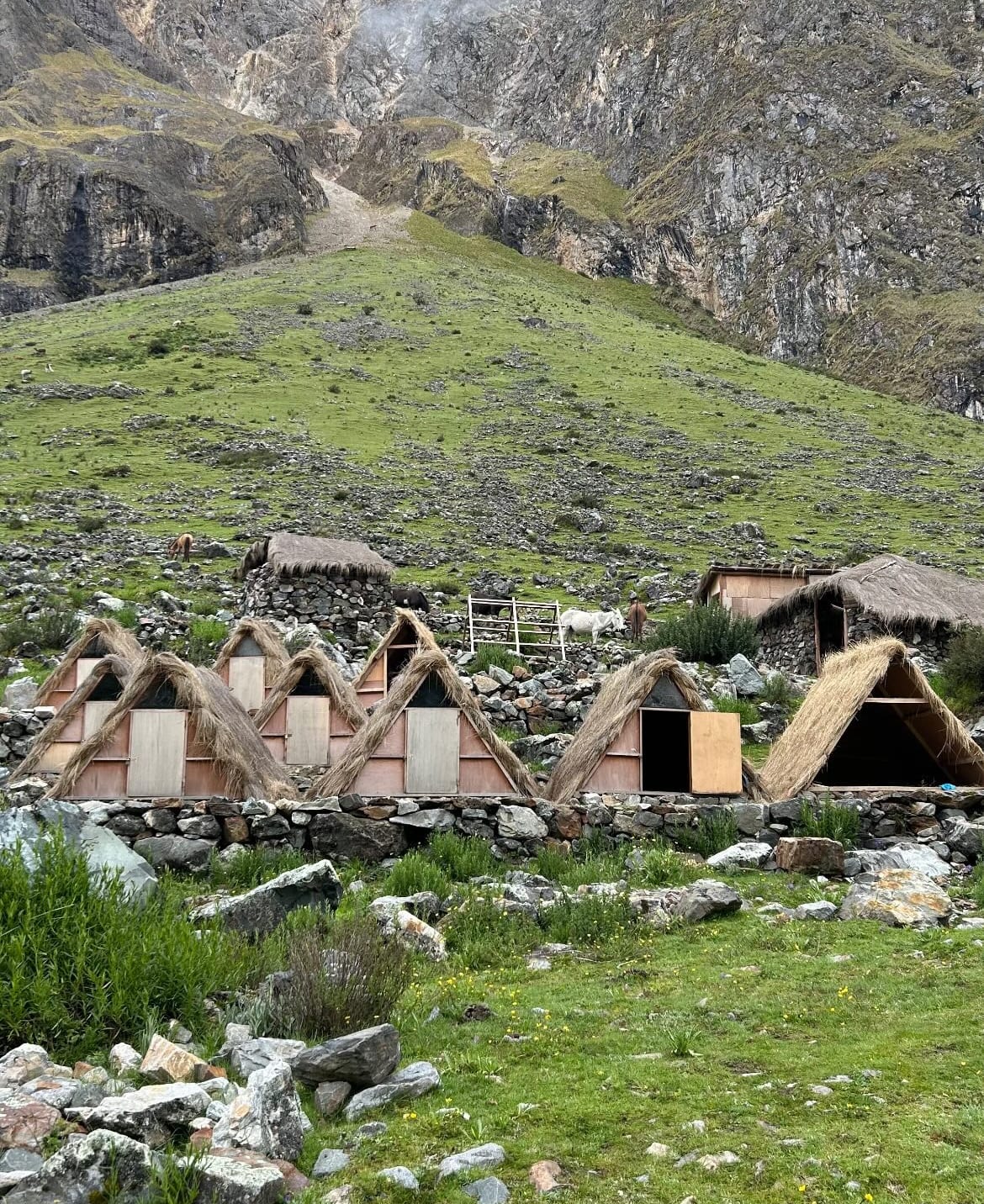 Llegué a Marampata con las piernas convertidas en gelatina y el cerebro oxidado por el esfuerzo. El pueblo, un conjunto de casas dispersas colgando del cerro, tenía esa aura de lugar detenido en el tiempo. Me alojé en el primer albergue disponible, una construcción de adobe con techos de calamina, y pedí un almuerzo que fuera proporcional al hambre acumulada. Mientras esperaba, bajo la sombra de un árbol, observé las terrazas incas que escalaban la montaña frente a mí. Esas líneas geométricas talladas en la tierra eran más que agricultura: eran un mensaje cifrado de una civilización que entendió el paisaje como un diálogo, no como una conquista.