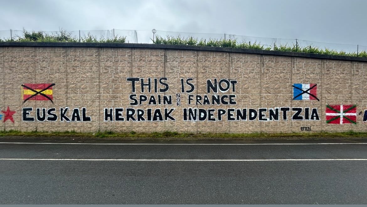 Zarautz emergió tras una curva: playa kilométrica de arena grisácea, surcada por surfistas en neopreno negro que parecían focas rebeldes. El pueblo, aunque pequeño, heredaba los precios abusivos de su vecina Donosti. Mi albergue –un refugio de 10€ con desayuno incluido– olía a lejía y esperanza. Dejé la mochila y salí a explorar. En la calle Mayor, una escena surrealista: militantes del partido de Santiago Abascal –el «Milei español»– montaban su puesto de propaganda ultraderechista. Frente a ellos, una treintena de vascos –estudiantes con pañuelos pro-independencia, abuelas que podrían derribar un toro con la mirada– coreaban *«¡Ez eskerrik asko!»* («¡No, gracias!» en euskera). Un joven con chaqueta de la Real Sociedad gritó: *«¡Esto es Euskadi, no vuestra puta sucursal! ¡Andáis a tomar por culo!»*. El aire vibraba con cada insulto, cada puño alzado. Cuando les dije *«Aupa!»* («¡Hola!»), una mujer me entregó un pin con la ikurriña: *«Eskerrik asko, lagun»* («Gracias, amigo»), sonrió, como si hubiera aprobado un examen de humanidad básica.