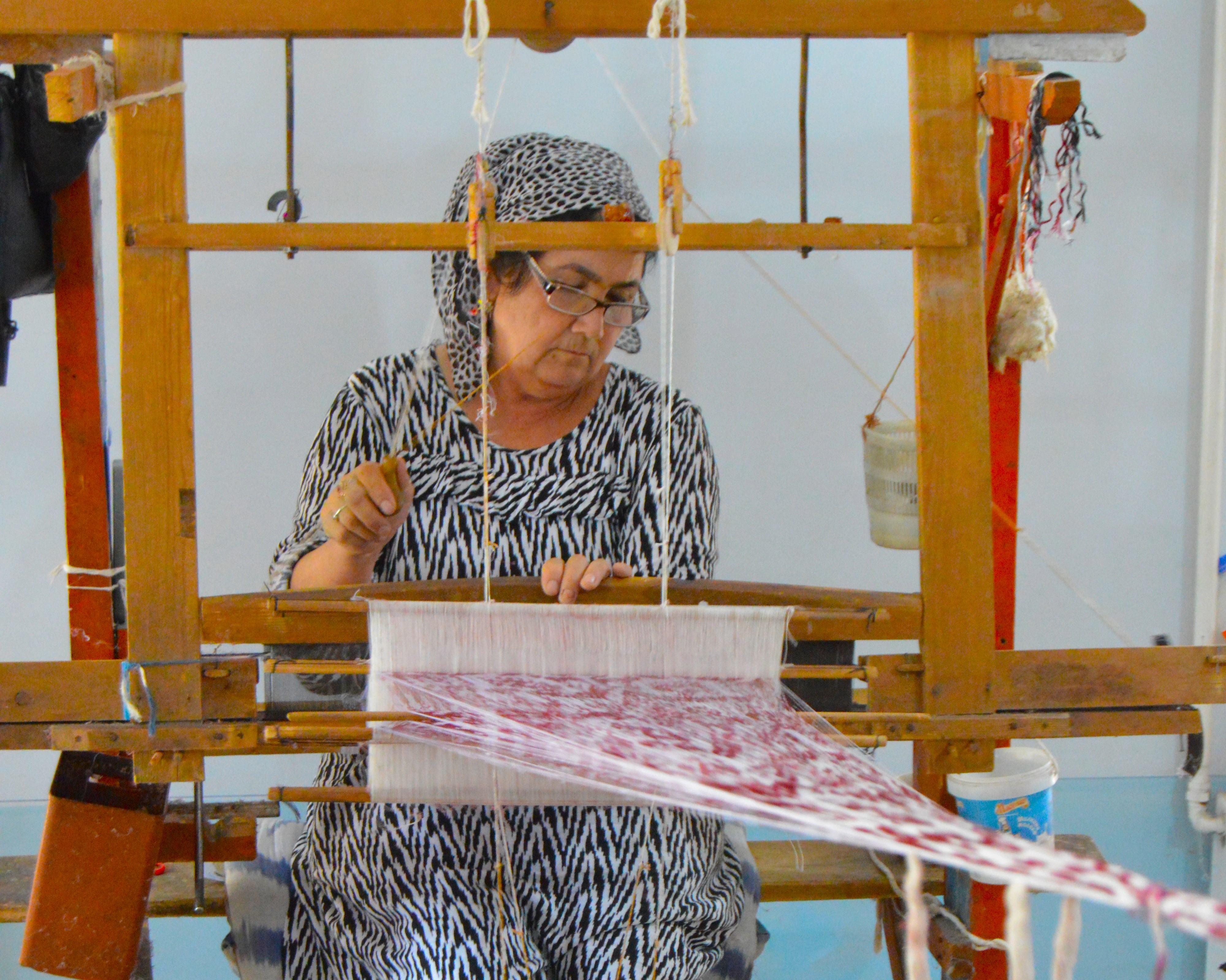 La primera visita fue a la fábrica de seda Yodgorlik, un sitio detenido en los años setenta. Vi todo el proceso: desde los capullos que hierven en agua hasta las máquinas soviéticas enormes que todavía funcionan. Mujeres sentadas frente a telares mecánicos que vibran como si fueran a desarmarse en cualquier momento, otras devanando hilos a mano con una paciencia que no se aprende en ningún taller moderno. El olor a tinta, a humedad, a metal caliente. La seda pasando de blanca a teñida en segundos, sumergida en recipientes donde los pigmentos hierven. Un trabajo duro, repetitivo, físico. Pero también un oficio que resiste, que sigue ahí porque forma parte de la identidad del valle.