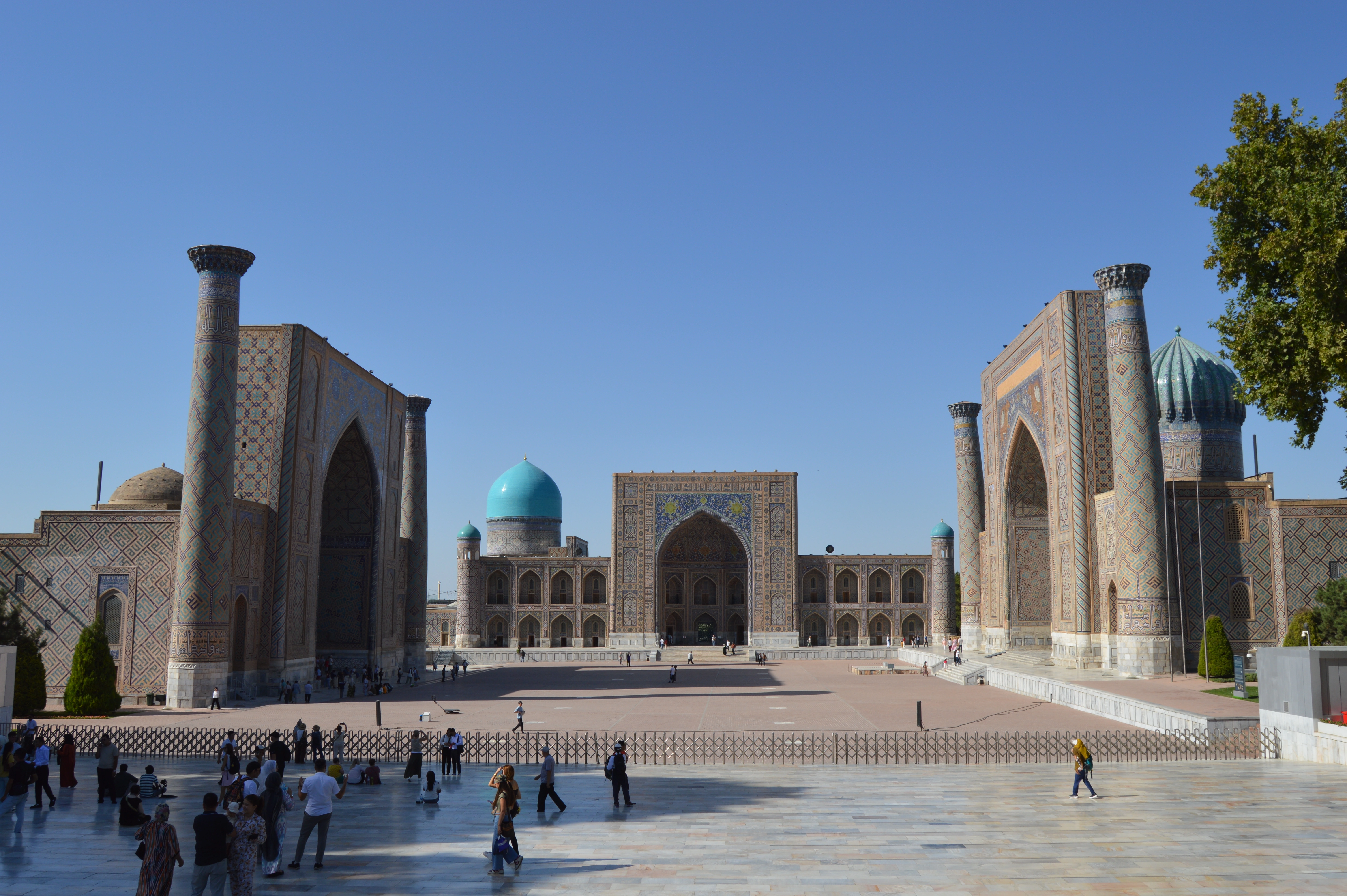 Llegar a Samarcanda después de semanas de caminos polvorientos y pueblos mínimos fue como aterrizar en un decorado antiguo que alguien mantiene impecable para que no pierda brillo. La ciudad tiene aura, tiene peso histórico, tiene nombres que resuenan en cualquier libro de escuela; pero a mí me costó encontrarle el pulso. Tal vez porque venía con la sensibilidad afinada a lo cotidiano, a lo espontáneo, y acá todo estaba perfectamente dispuesto para ser visto. No vivido.